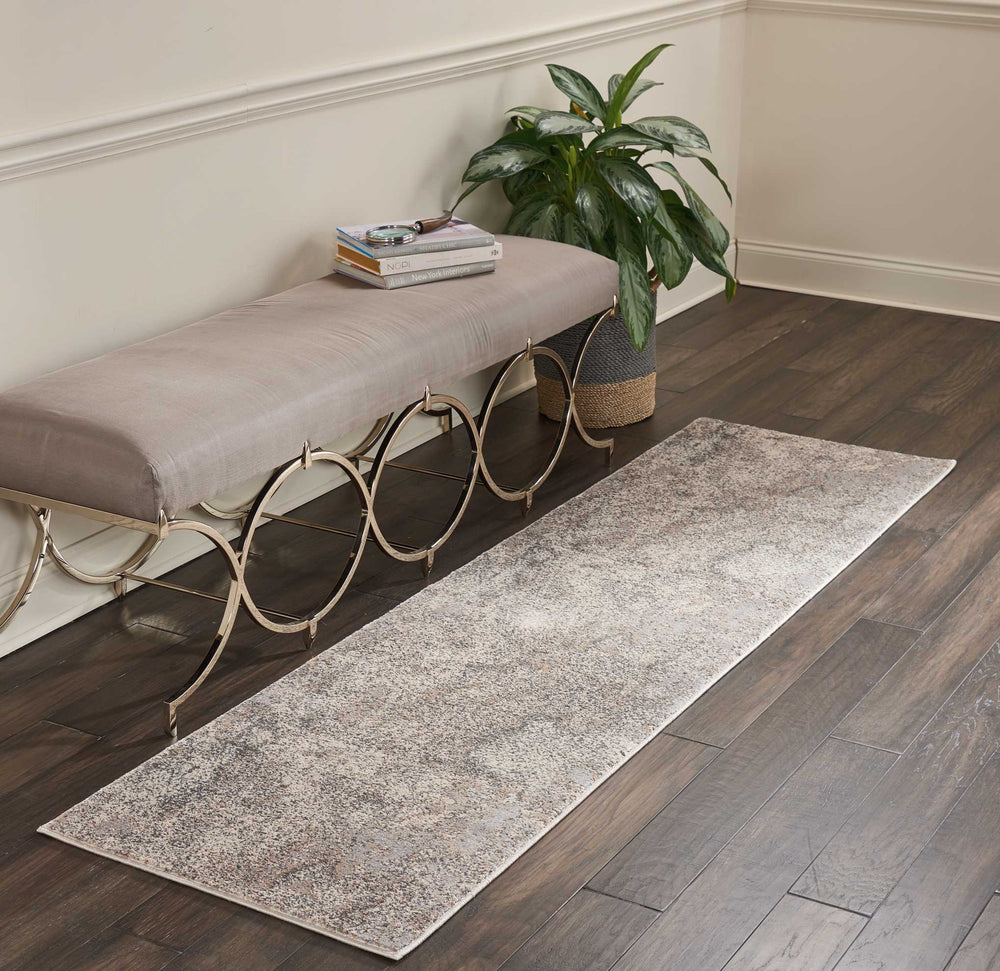 Fascinating patterns emerge from the abstract pavement design in this kathy ireland® Home Heritage Collection runner rug. The intricate patterns evoke images of stepping onto the worn pavement and exploring the vibrant urban scenes.