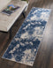 Deep shades of blue and charcoal grey contrast with elegant cream and white accents for an eye-catching abstract effect in this kathy ireland® Home Heritage Collection runner rug. The silky high-low pile design provides an ideal contemporary touch for visual intrigue in any room.