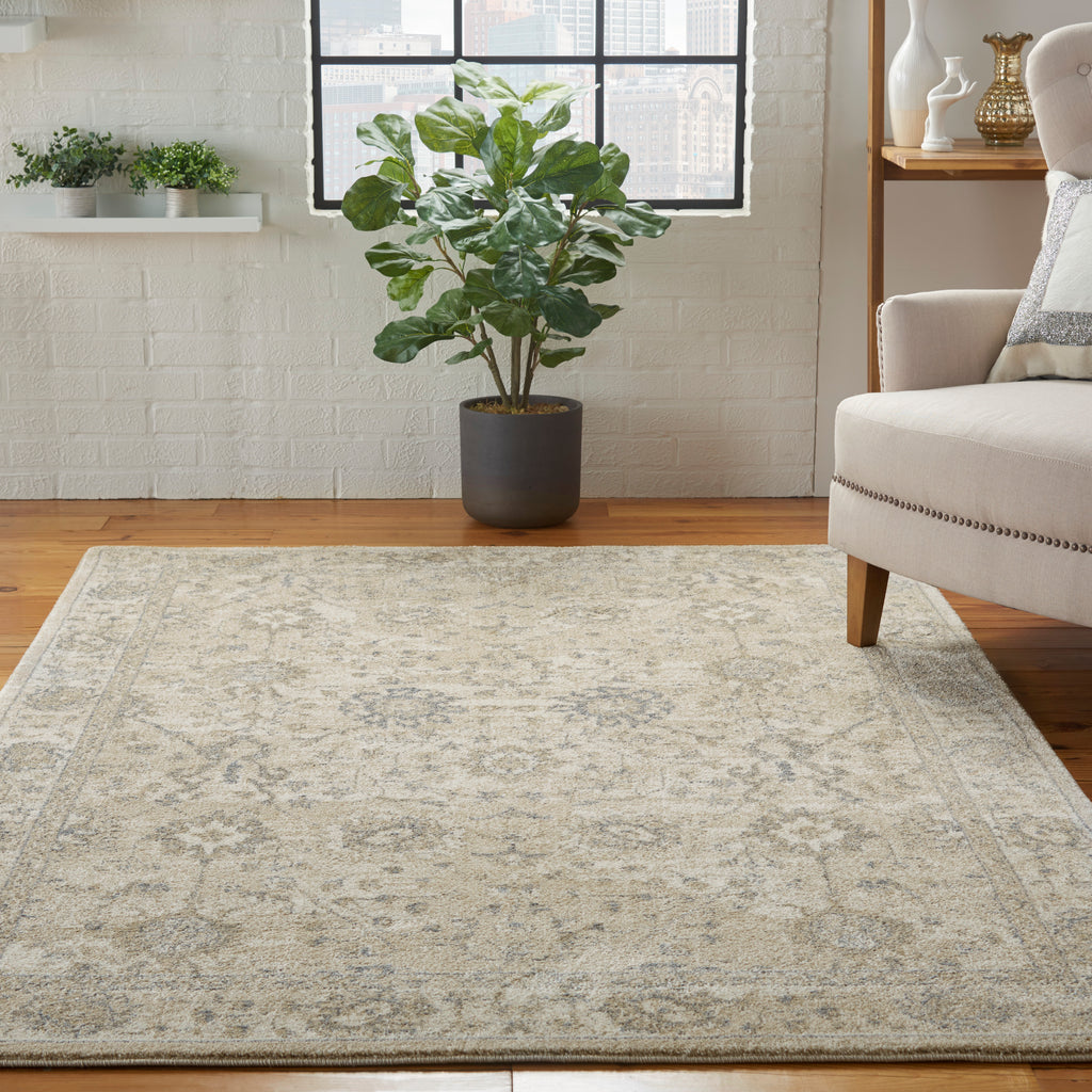 Contemporary neutral tones bring a new look to this traditional bordered Persian rug as part of the Moroccan Celebration Collection from kathy ireland® Home. Power loomed for durability and easy care, this rug adds an instant allure to any room in the home.