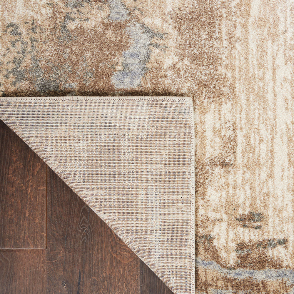 Dramatic distressed designs in abstract patterns gives this Moroccan Celebration rug an intriguing industrial look and feel, in earth tones and silvery grey. Power loomed for durability and easy care, this kathy ireland® Home rug is the perfect contemporary accent for any space.