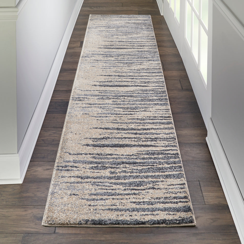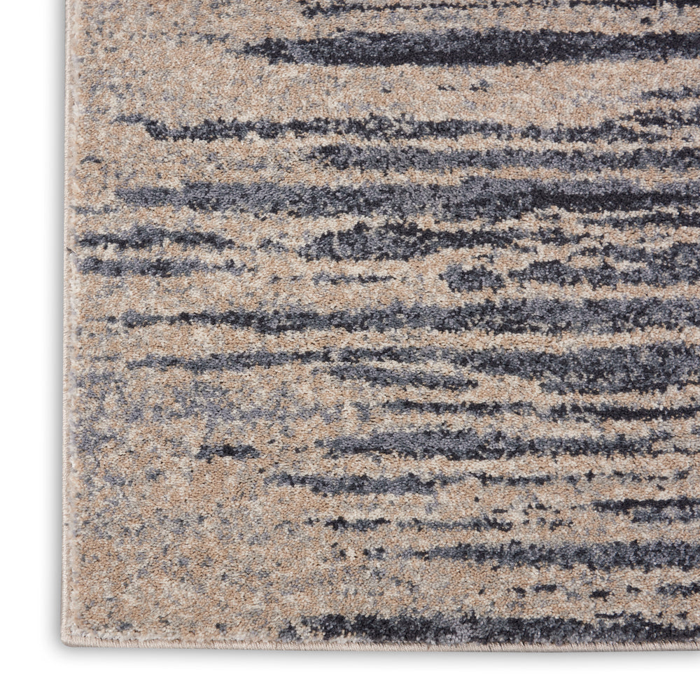 Bold contrast using neutral tones makes this Moroccan Celebration rug an energetic addition to any contemporary setting, with drifts of grey crossing a beige field of soft fibers. Power loomed for durability and easy care, this kathy ireland® Home rug brings a modern aesthetic to any space.