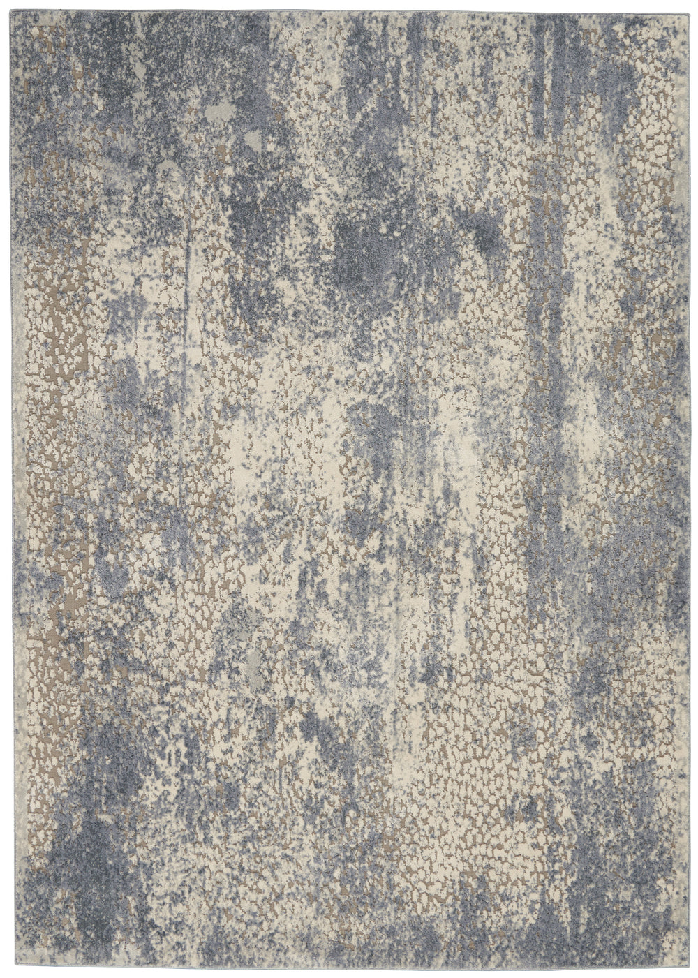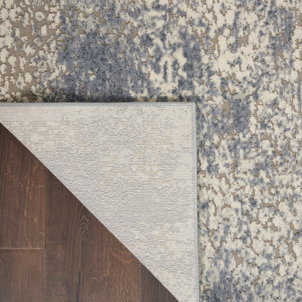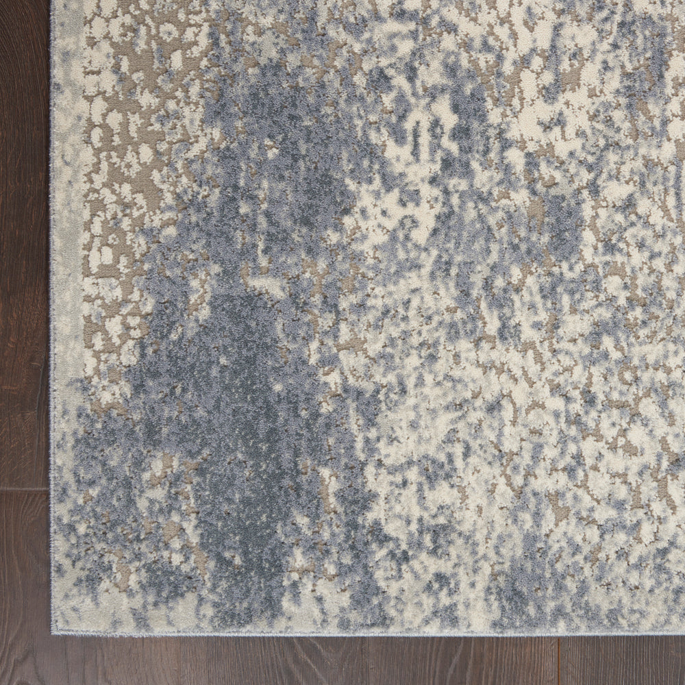 Smoky slate grey abstract patterns on a carved high-low pile bring exciting depth and texture to this Sahara Collection rug from kathy ireland® Home. The ivory and beige pile of easy-care fibers creates a neutral color palette that lends a contemporary chic vibe and fits with a range of modern contemporary interiors.