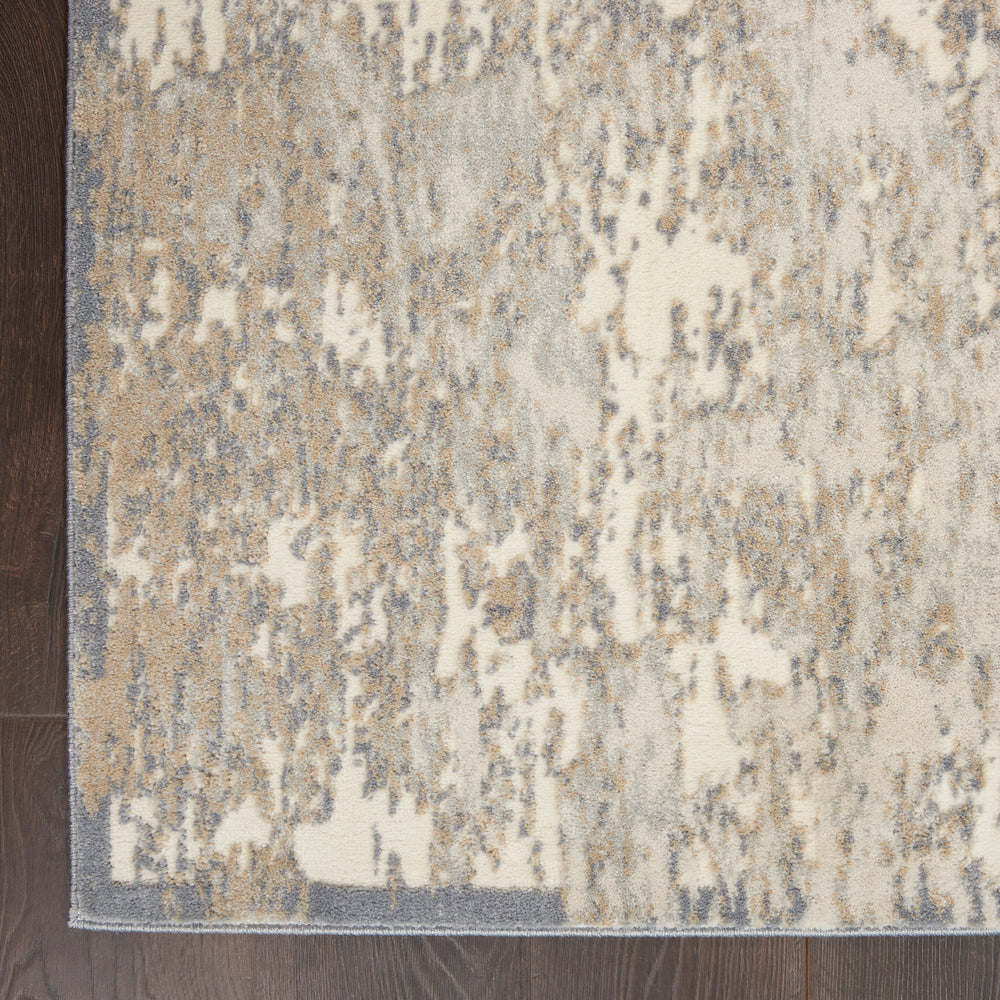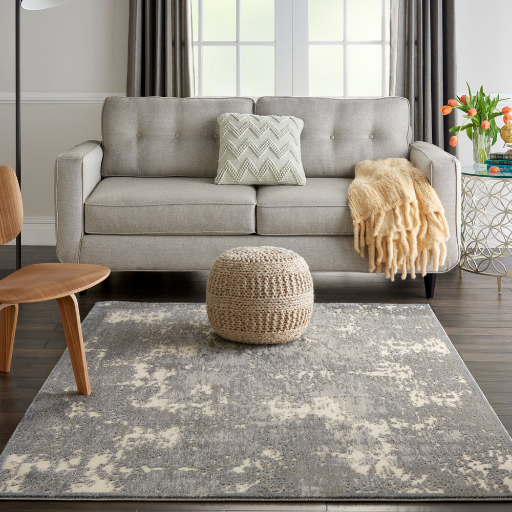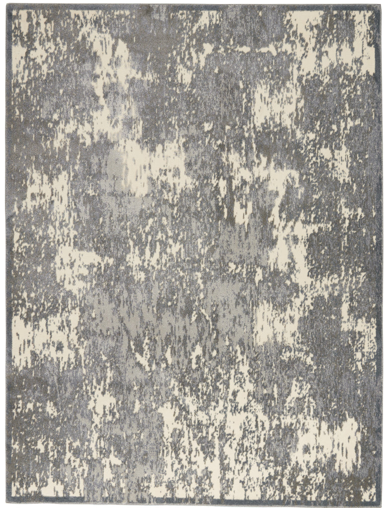 This Sahara Collection rug from kathy ireland® Home brings contrasting neutral tones together in an abstract, industrial rug design that brings a contemporary chic to any space. Ivory and light and dark greys on easy-care fibers allow this versatile rustic rug to work with virtually any interior décor.
