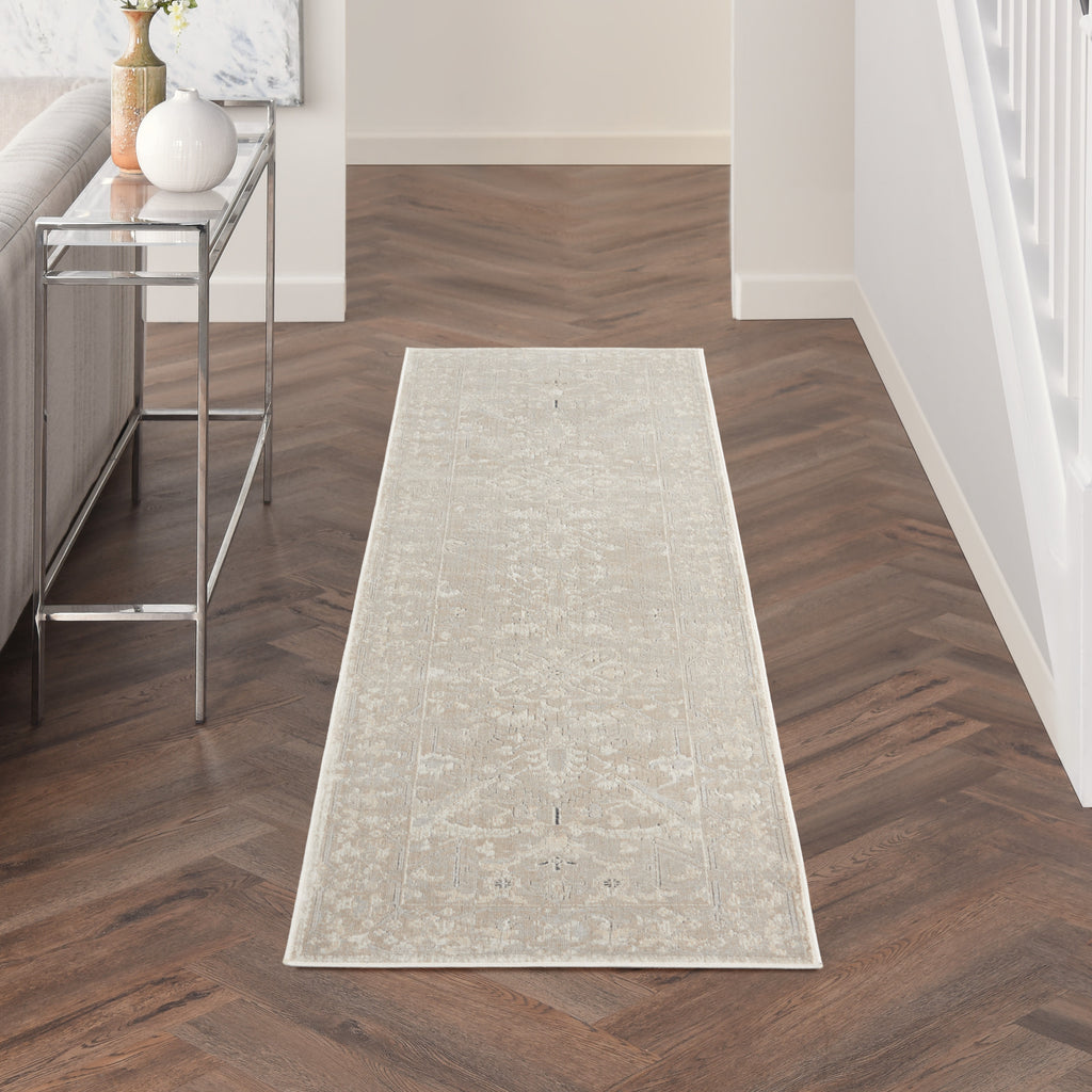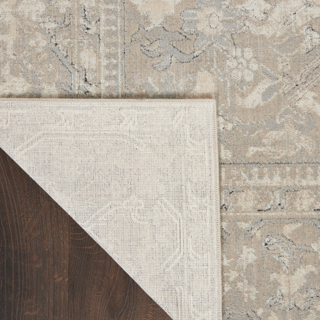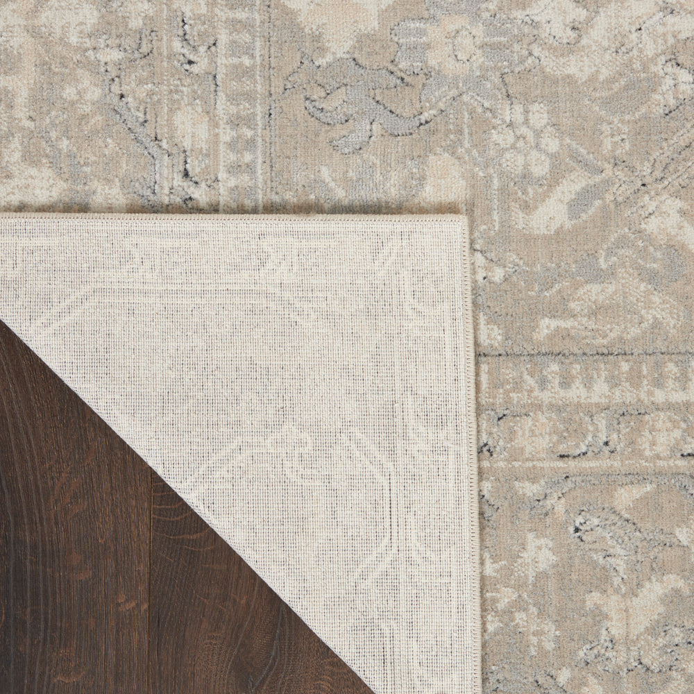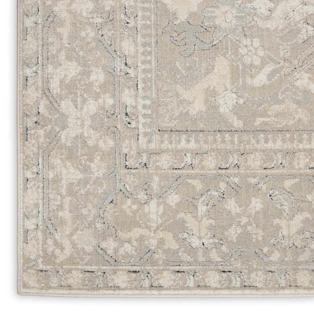 A traditional Persian design is made modern in this kathy ireland® Home Malta area rug. Its soft, contemporary beige-on-beige colorway is luminous in a silky and easy-care fiber blend of polypropylene and chenille. With ornate border, cut-pile texture and serged edges.