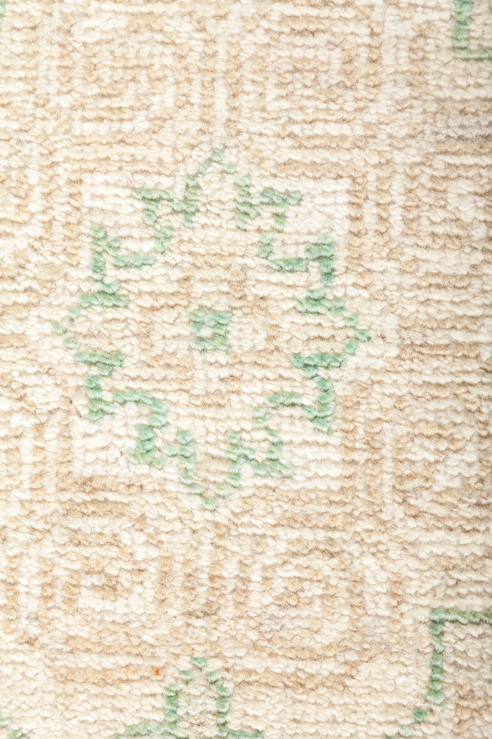 These rugs develop the decorative schemes of late 19th century Turkish carpets. These rugs have large simplified patterns in light tonalities featuring ivory, pale blue, rust, salmon and light green. The origin of these patterns derive from Persia, but the rendition is strictly more modern and decorative. These carpets can be found in various color ways and in an almost infinite range of patterns suitable for every home.