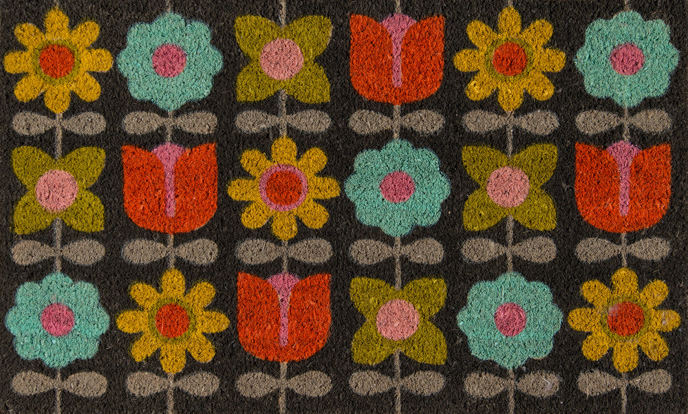 A welcome mat with major mojo, the retro styling of this outdoor area rug is perfect for welcoming family and friends into your home. Graphic color blocking and bold typography calls attention to words like “family” and “hello” with fashionable flair and an exterior application that you can wipe your feet on. Each decorative floorcovering is crafted from 100% natural coir fibers to create a area rug assortment that’s as sustainable as it is cool.