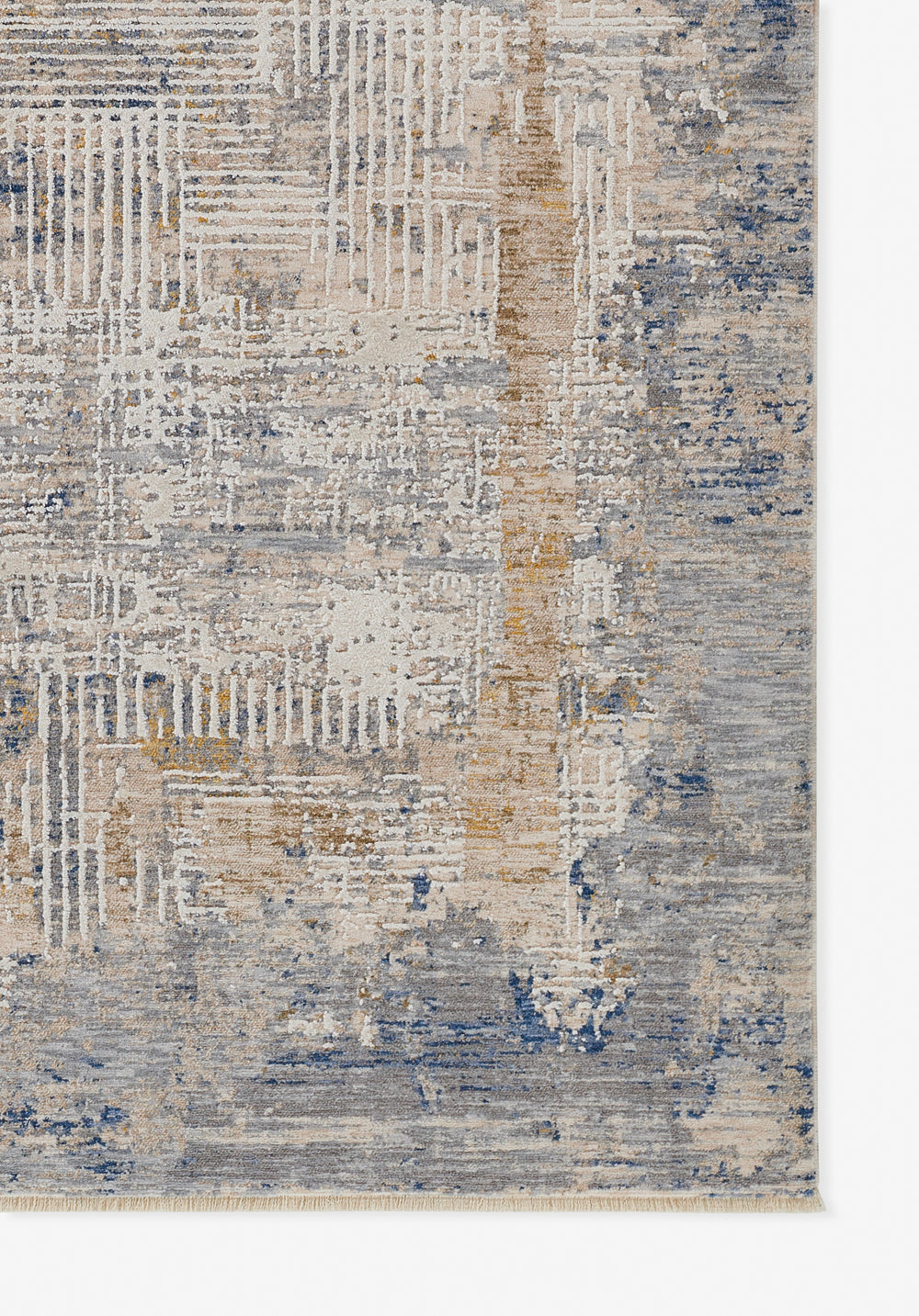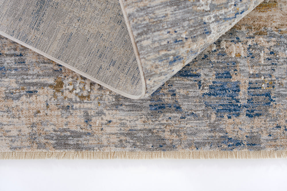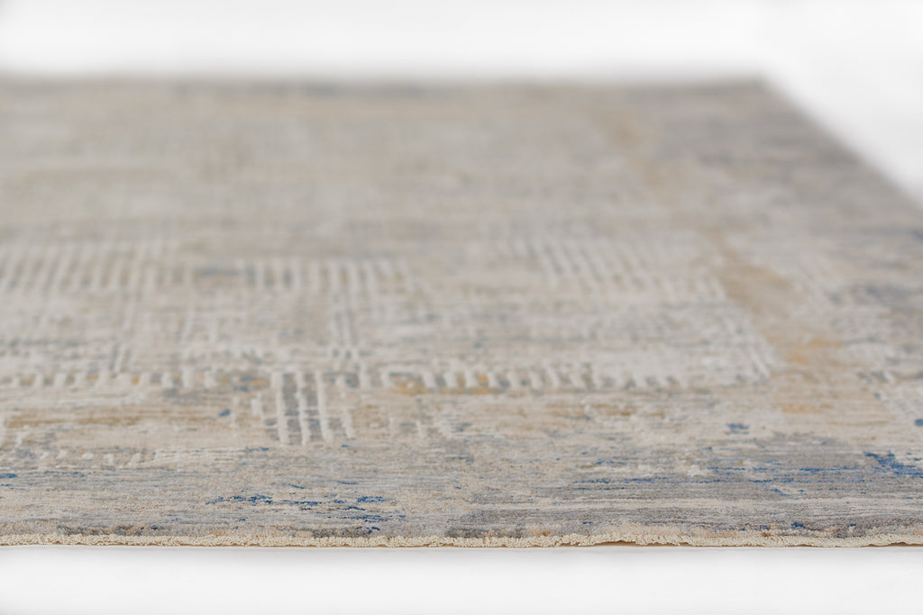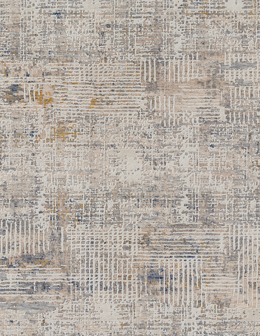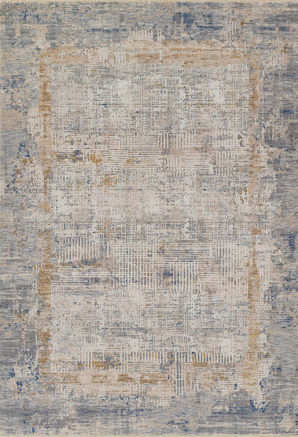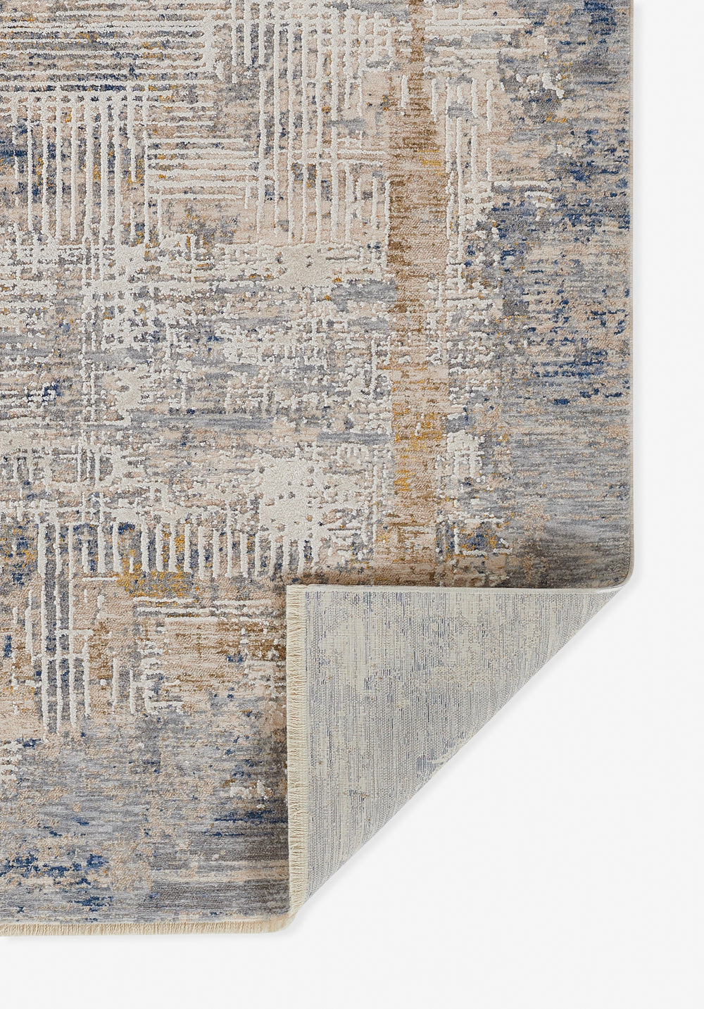 A faint golden border, lots of visual texture, and some neutral grey coloring work together beautifully in this rug. Machine-made with polyester and viscose materials for indoor use, this rug from the Amara collection is fully influenced by the colors and surfaces found naturally occurring outdoors in nature.