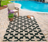 This elegant indoor/outdoor all-weather area rug offers everything you need to complete the ultimate outdoor room. Repeating stripes, diamonds, trellis and arabesque shapes meet nautical icons like ropes, anchors and waves, adding a luxe layer to all interior and exterior living spaces, including patios, porches and pool decks. Durable power-loomed construction ensures each decorative floorcovering transitions beautifully from season to season while the vibrant color palette and enduring polypropylene fibers offer endless design possibilities indoors and out.