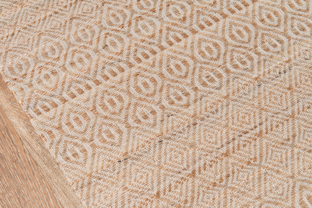 Whether your style is bohemian or well-traveled traditionalist, this handwoven area rug makes an unforgettable accent piece. Barely-there shades of beige and white reveal rows of intricate geometric patterning that shift from concentric diamonds to exotic lozenge shapes. Finished with a cotton/latex backing for reassuring slip resistance, organic design enthusiasts will love the rug’s natural fiber composition – a combination of jute and cotton that’s the perfect union of strength and softness.