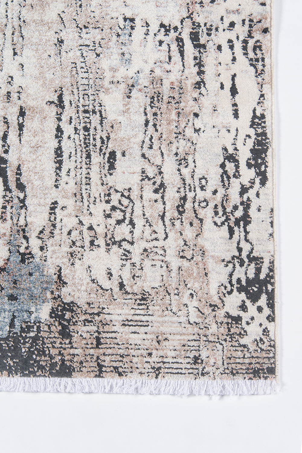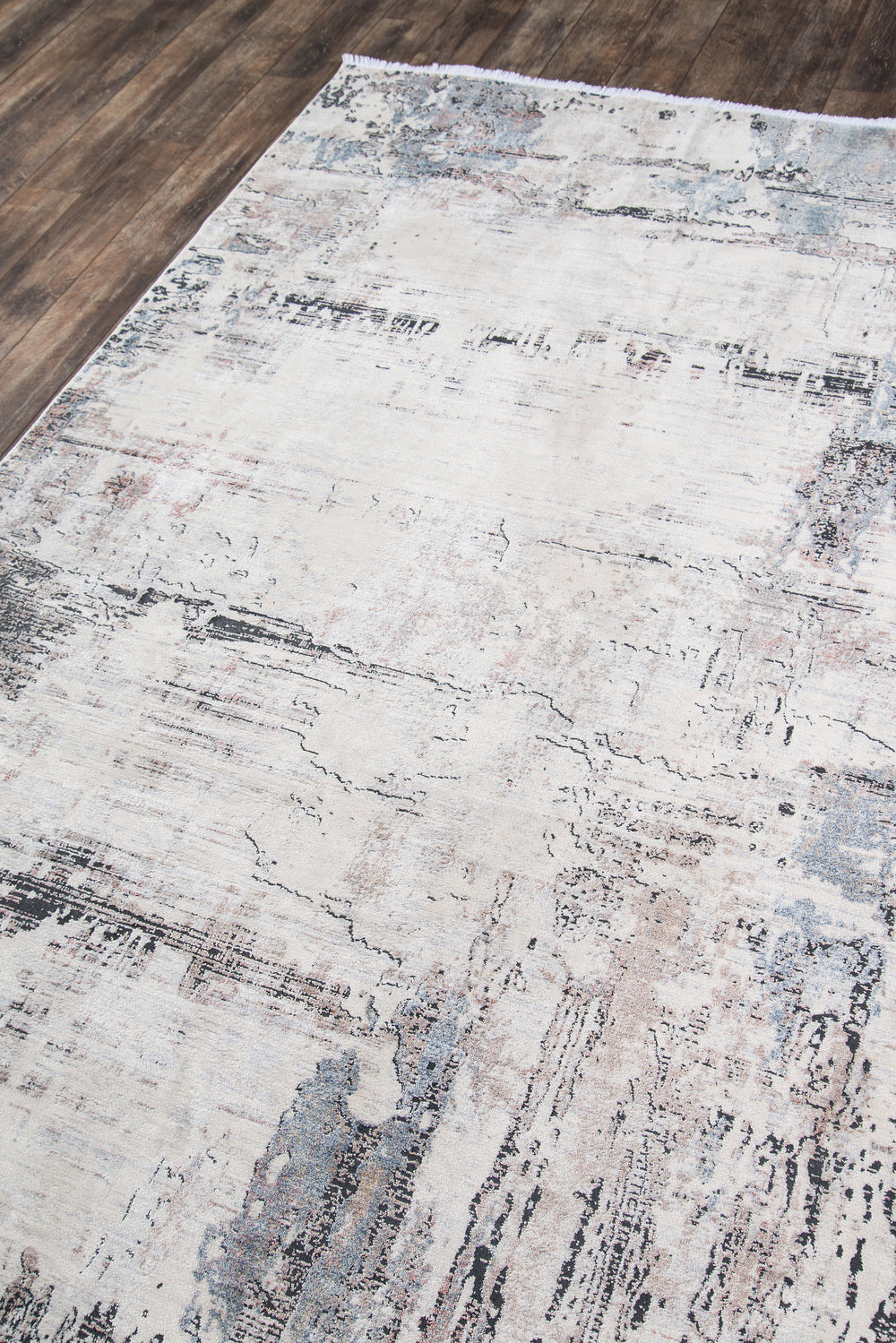 The abstract design of this modern area rug collection is an exuberant expression of tone and texture. Hints of traditional carpet patterns play out beneath splashes of white and bold black striations, artfully crafted in a curated palette of grayscale shades. A blend of silky viscose and polyester fibers invite you to slip into something more comfortable for the floor, their delicate threads and smooth hand shimmering beneath living room light with subtle luster.