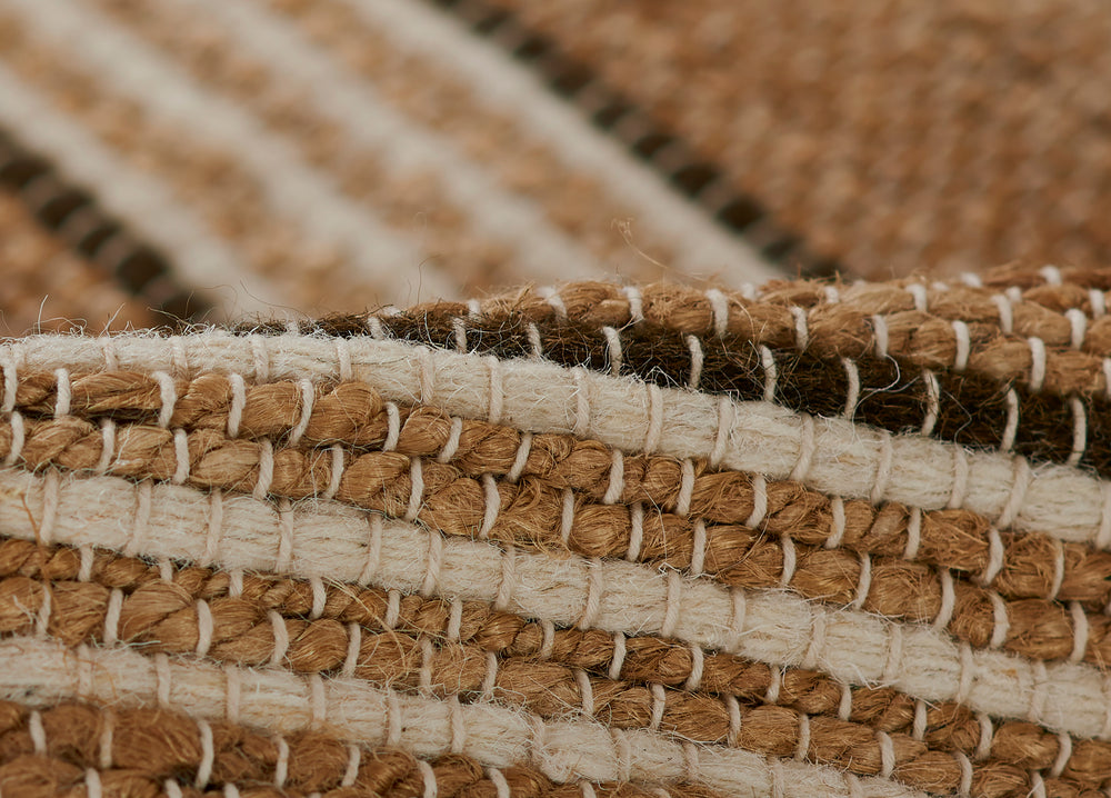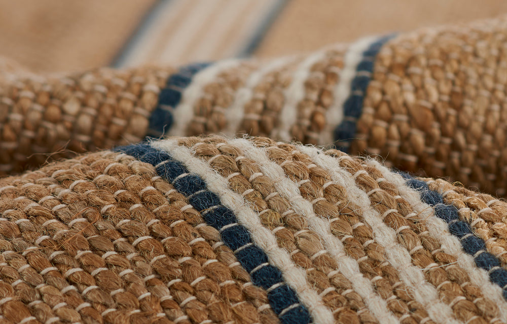 A different take on a simple stripe style, this tightly handwoven natural jute and wool rug is the modern marvel your interior needs. The classic blue color naturally contrasts with the jute fibers, while the brown colorway adds a little something extra. This rug provides a beautiful foundation for your space, with its elevated take on a classic, at an affordable price.