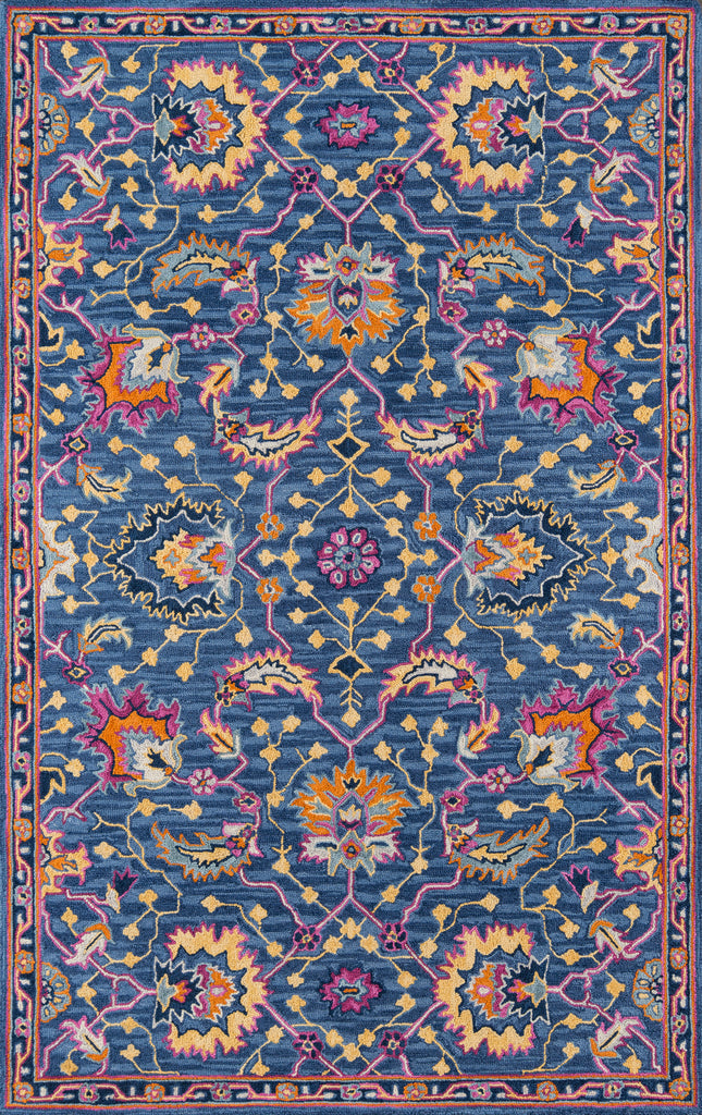 The saturated shades of this decorative area rug reinvent the classic Persian carpet in a vivid color palette. The captivating assortment offers a modern interpretation of traditional rug motifs, as vibrant pink, orange, blue and yellow tones form flowers, vines, palmettes and medallions in colors beautiful and bold. Hand tufted from 100% natural wool, each floorcovering makes a dramatic design statement as a focal point on floors throughout the home.
