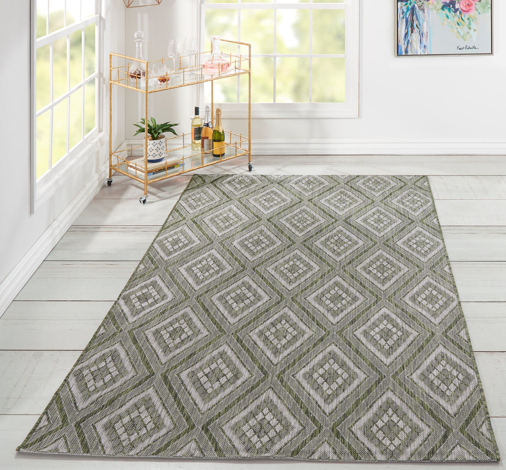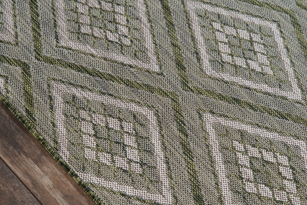 Design an atmosphere with an aire of distinction in the geometric gestures of this Madcap Cottage by Momeni area rug collection. As versatile accent rug options for living rooms, dining rooms or decks, all-over patterns of elongated diamond trellis shapes are woven in UV-resistant jewel toned shades to suit every indoor and outdoor space. Durable polypropylene fibers hold up in rain or shine, making this all-weather rug assortment an ideal floorcovering option for the ultimate outdoor room. Bring the adventure home.