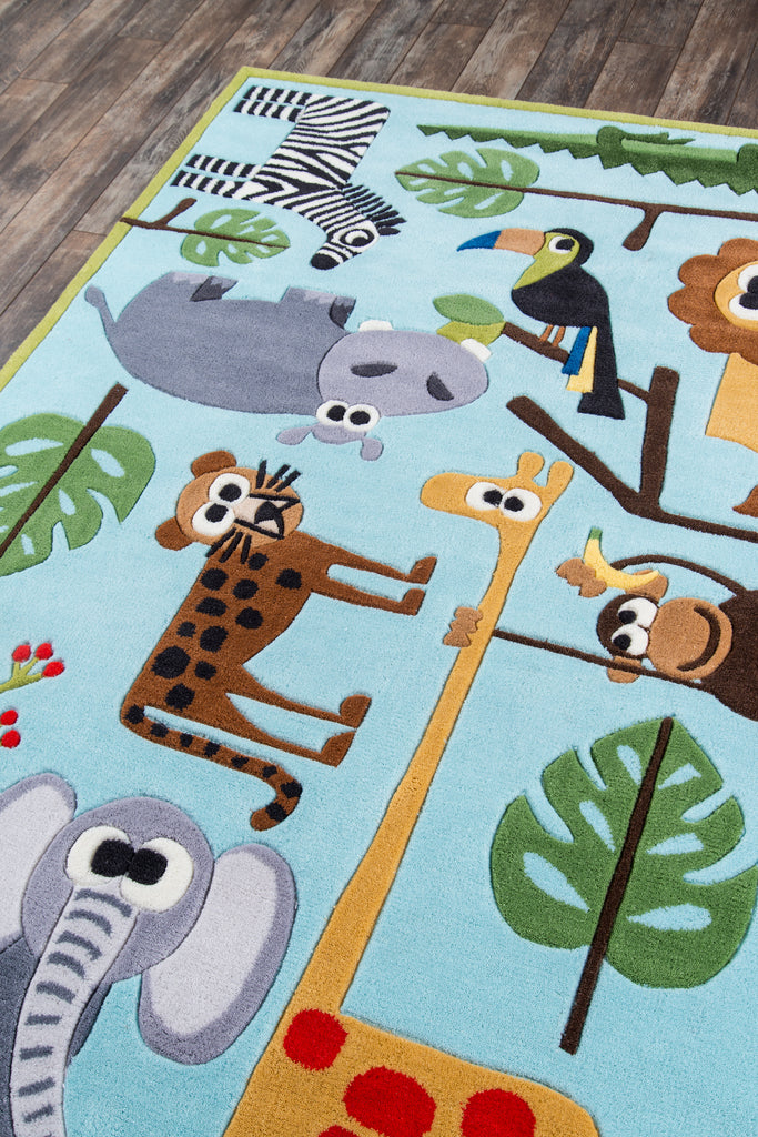 The whimsical style of this kids area rug brings characters from childhood storybooks to life. From woodland creatures and farm animals to robots, dinosaurs and modes of transportation, each playful rug boasts a distinctive design that’s sure to charm children of all ages and interests. Perfect for a playroom or bedroom, this decorative and fun floorcovering assortment is hand tufted of durable polyester fibers for ultimate softness beneath little feet.