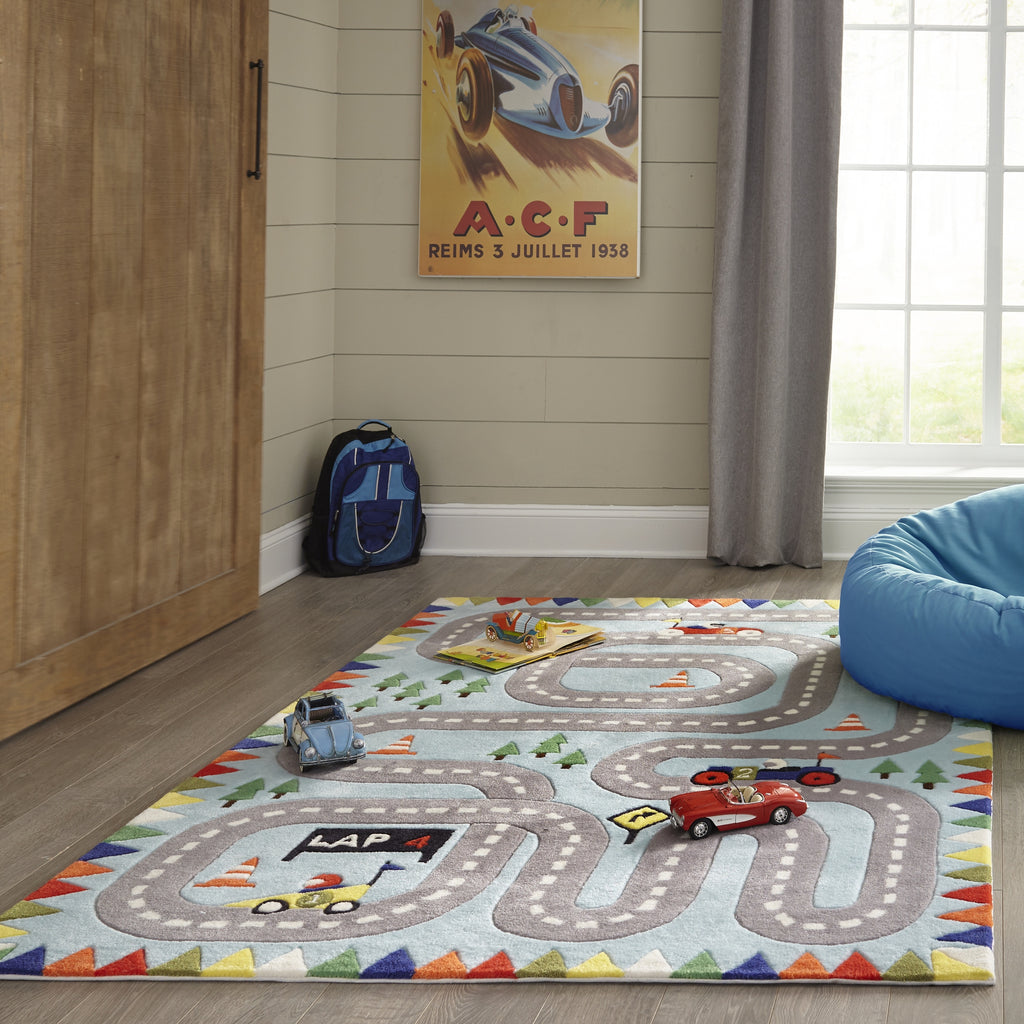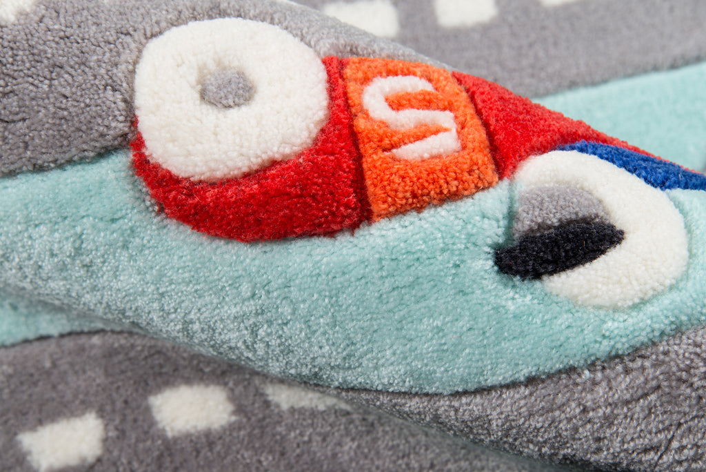 The whimsical style of this kids area rug brings characters from childhood storybooks to life. From woodland creatures and farm animals to robots, dinosaurs and modes of transportation, each playful rug boasts a distinctive design that’s sure to charm children of all ages and interests. Perfect for a playroom or bedroom, this decorative and fun floorcovering assortment is hand tufted of durable polyester fibers for ultimate softness beneath little feet.
