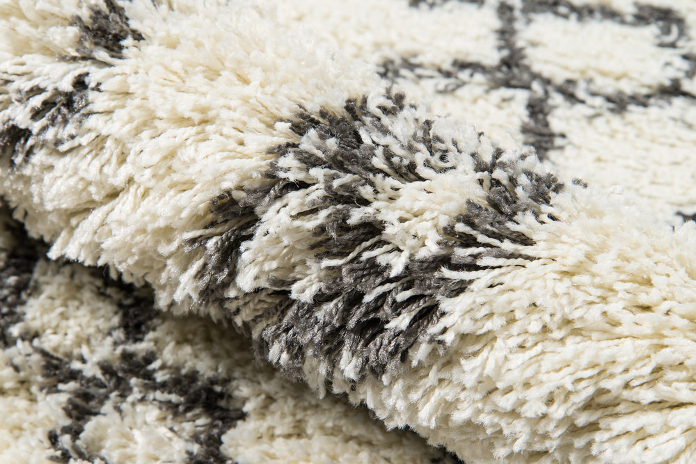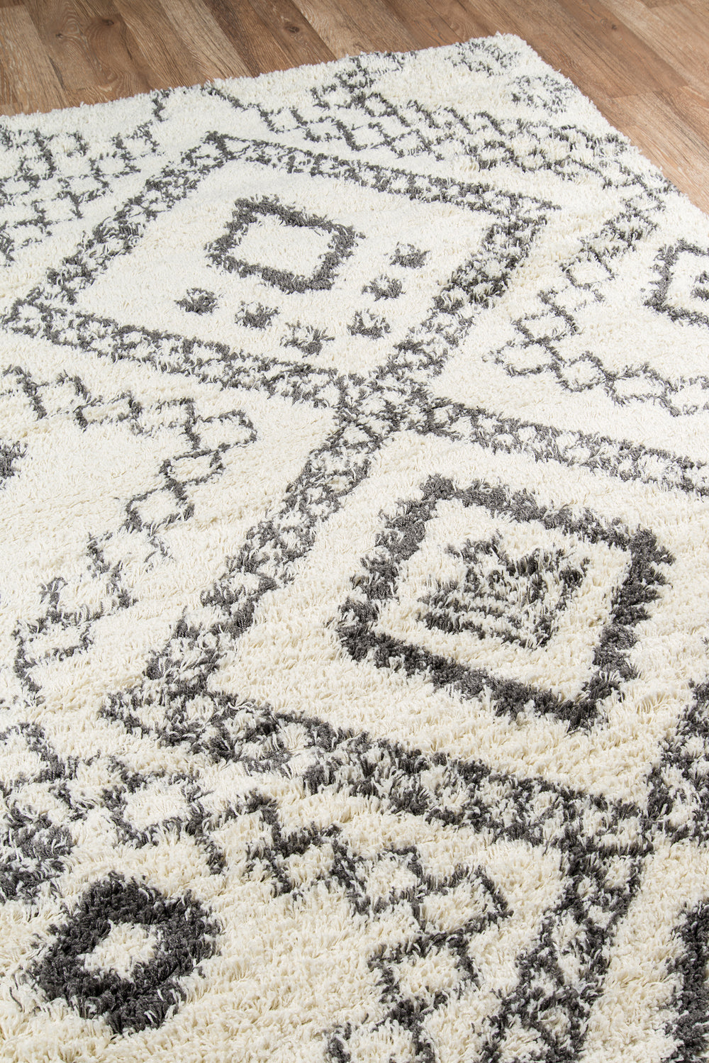 The graphic patterns of this shaggy area rug create a stylish combination of town and country. Versatile enough for classic and contemporary floors, the versatile floorcovering assortment boasts an array of repeating arabesques and diamond designs and textures inspired by Moroccan Berber carpets. Power loomed from sumptuous polypropylene fibers, the dense pile of each decorative floorcovering invites you to sit on the floor and stretch out.