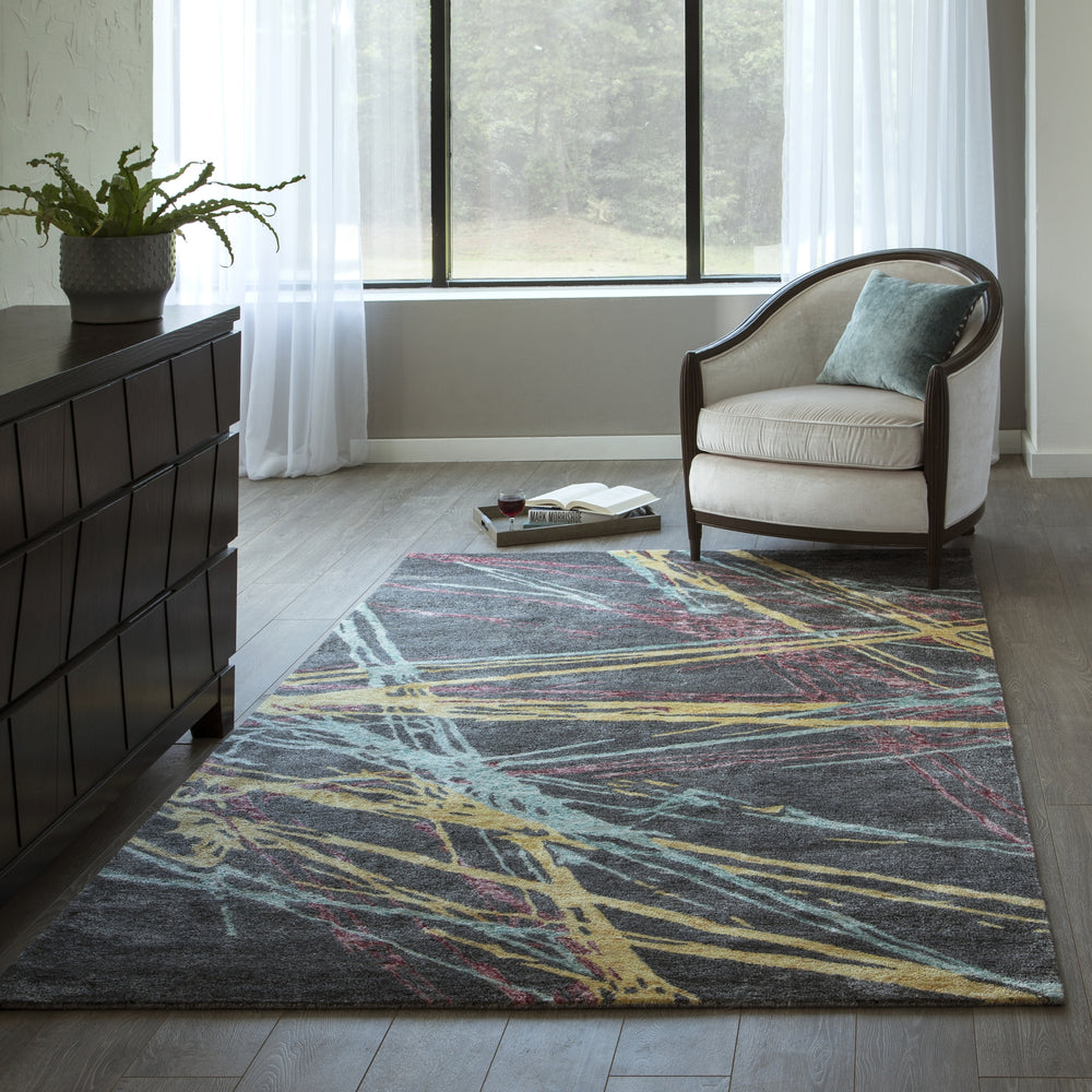 The vibrant color palette and abstract patterns of this modern area rug reflect a truly visionary design. Opulent shades of silver, red, gold and blue create a washed watercolor effect across geometric shapes, floral motifs and freeform stripes, effortlessly blending each color into the next. Silk-like viscose threads and hand-tufted construction creates a decorative floorcovering assortment that exudes luxury as it enhances the appearance of interior floors everywhere.