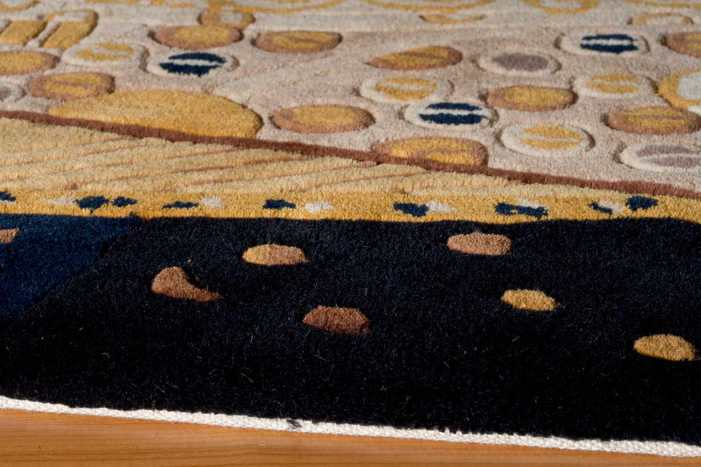 The geometric gestures of this decorative area rug recall the distinctive shapes of the American Modern Art movement. The iconic perspectives of impressionist and expressionist painters are reflected in each area rug, turning every interior floor into a contemporary art exhibition. Hand tufted with unparalleled care and craftsmanship from the finest wool fibers, each modern floorcovering offers the softest of hands with an unsurpassed shine.