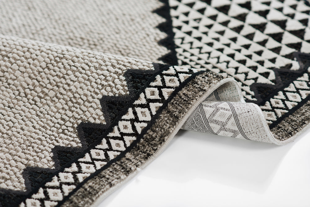 Brilliantly contrasting, this rug from the Noho collection offers you a beautiful monochromatic grey color scheme to go with your minimalistic black and white color palette. Inspired by Moroccan design trends, this piece is where edgy style meets sophistication. Machine made in Turkey with 100% polyester fibers, it will also withstand the foot traffic in your home from guests and pets alike.