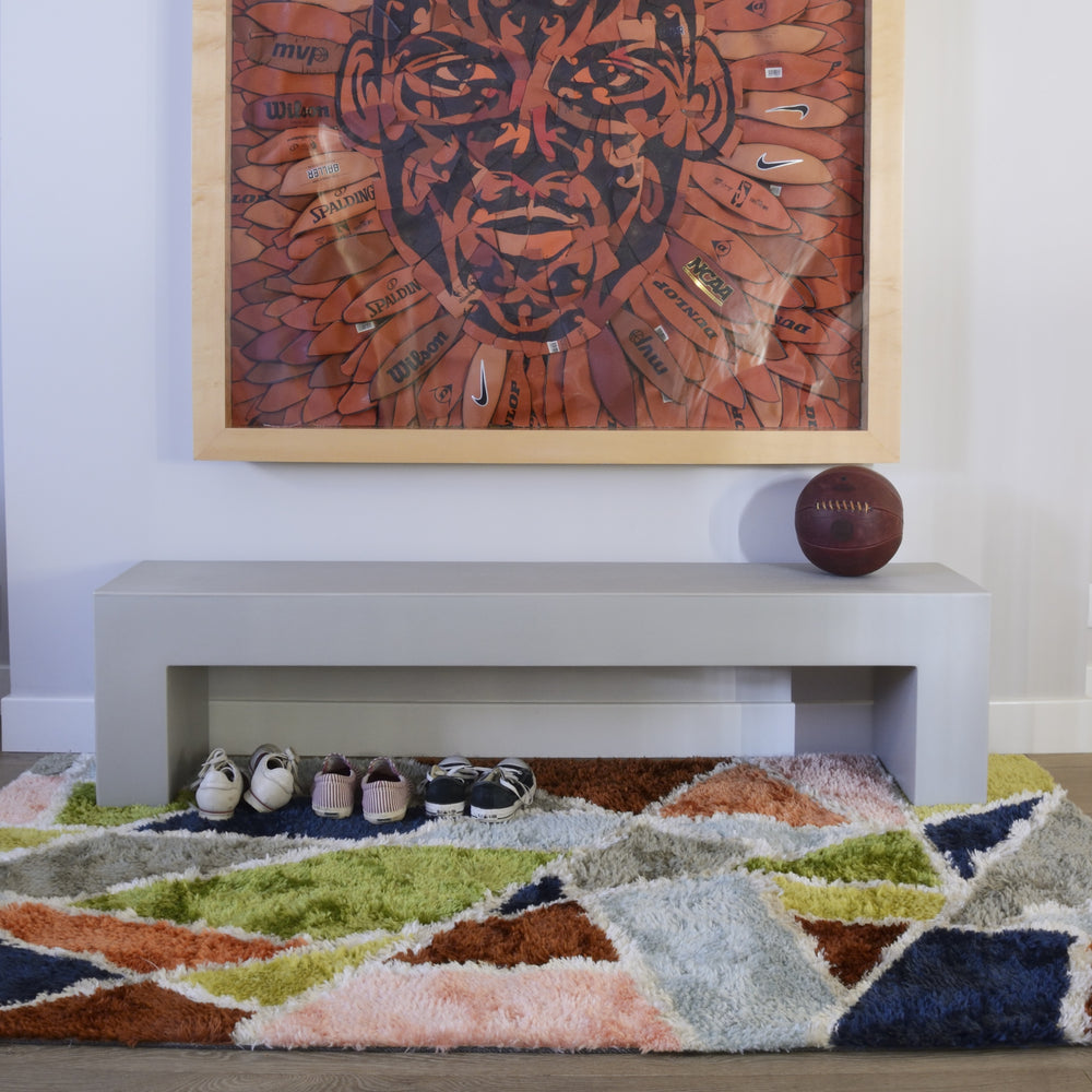 Inspired by mid-century design with its groovy shapes and shaggy textures, this modern area rug features Scandinavian style straight from the 70s. Each decorative floorcovering reimagines retro swirls, prisms and curves in combinations of burgundy red, grass green, sky blue and soft pink. Artfully crafted from polyester threads, these hand-tufted rugs pair perfectly beneath an Eames chair, papasan or pouf.