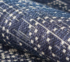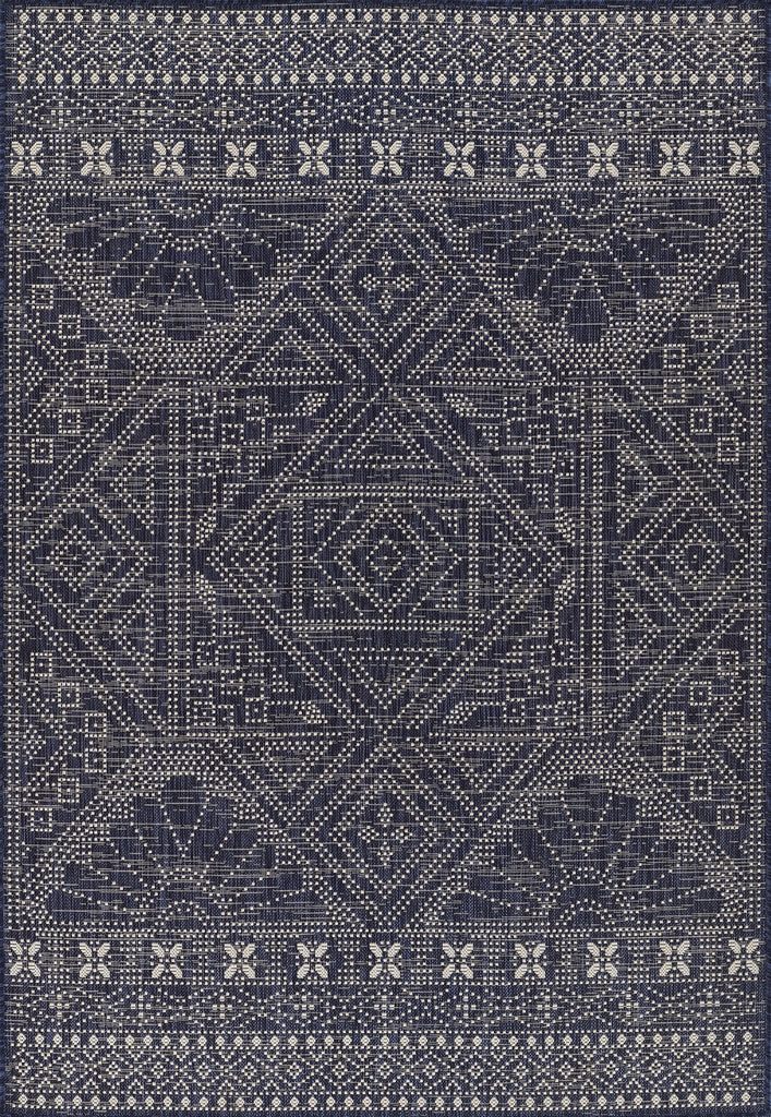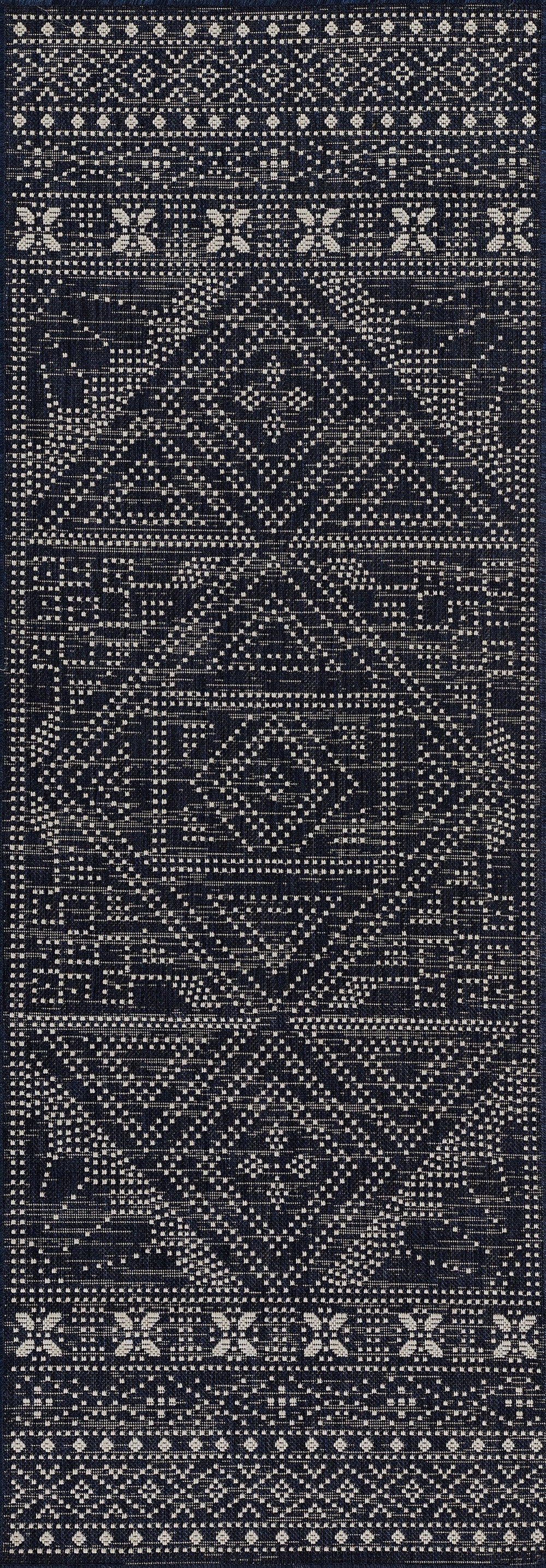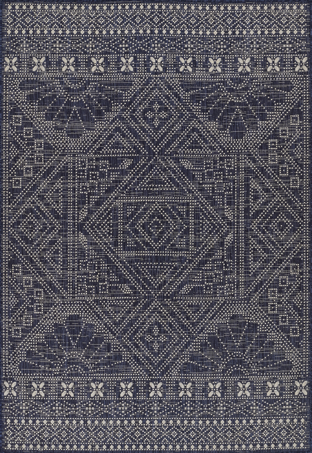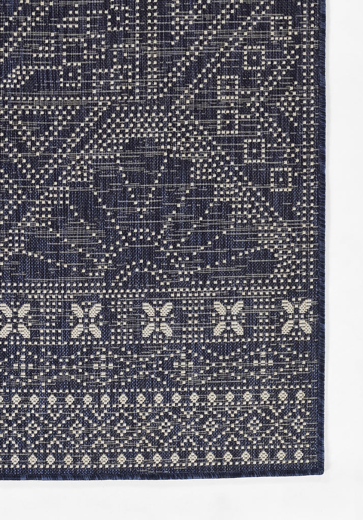 This navy patterned rug from the Riviera Collection is the perfect seasonal transition piece, but it will look good at any time of year. Keep it at your back door or in your office space, thanks to a range of sizing options. The applications are endless with this versatile rug, and it will withstand anything you throw at it thanks to its polypropylene fibers.