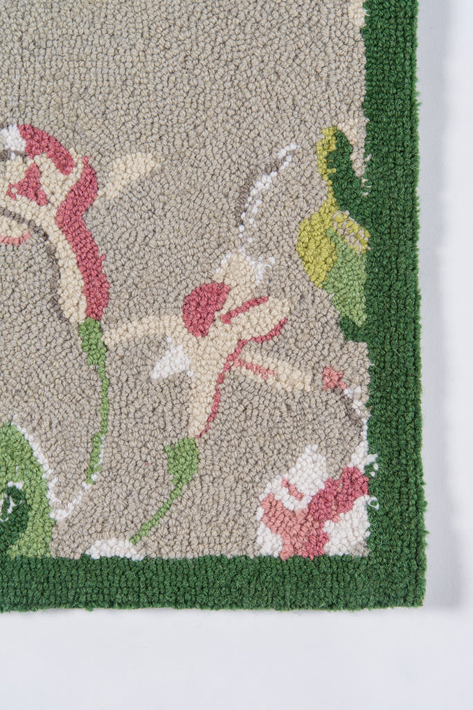 A lovely homage to the English garden inspires the floral fantasy of this traditional area rug. A distinctive accent for the distinguished room, hand-hooked wool fibers capture every detail of the lush green leaves and pink and white peony flowers as they bloom above a cool grey background. The artful pairing of the painterly tableau with oversized blossoms illustrate the wit and whimsy of the Madcap Cottage by Momeni collection, creating a charming textile design that exudes modern attitude with a wink to the classical era. Bring the adventure home.