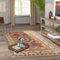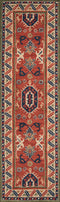 The graphic global designs of this traditional area rug are reminiscent of roads less travelled. Intricate Kazak rug motifs, including geometric patterns and repeating floral fields, are depicted in desert-inspired shades of warm red, gold, burnt sienna and sky blue. Natural 100% wool fibers and hand-tufted construction reflect the rugged sensibilities of each rug’s nomadic design, while a washed finish gives the rustic rug a refined hand.