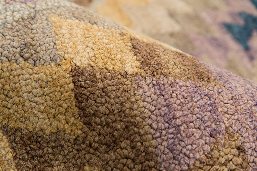 A cool-toned multicolored rug, its pastel shades accented with blocks of deep blue add a bohemian sensibility to your space. This large-scale pattern offers an updated take on a traditional pattern that makes it an ideal statement piece in a living or dining room. Made of 100% hand-hooked wool and tip sheared for extra softness, it’s a true classic.