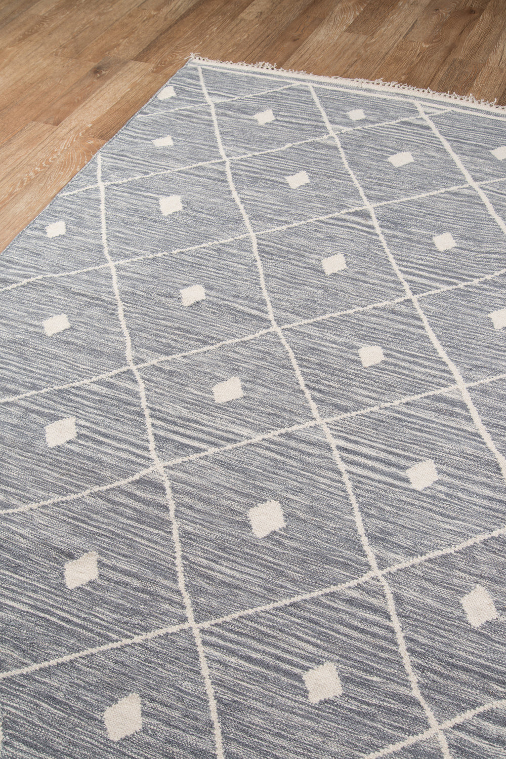 Timeless hand woven carpet techniques enhance the artisanal quality of this decorative area rug. Captured in colors ranging from pastel pink and ivory to denim blue and dove gray, fringed edges feel utterly bohemian beside bold geometric patterns and tribal motifs. Renown for its superior wear and stain resistance, 100% natural wool fibers make each decorative floorcovering a true statement piece with sustainable beauty.