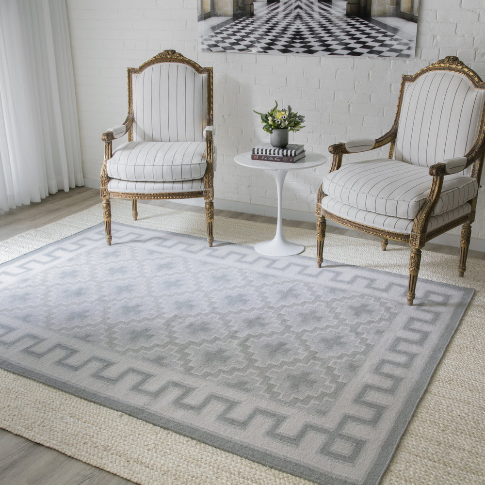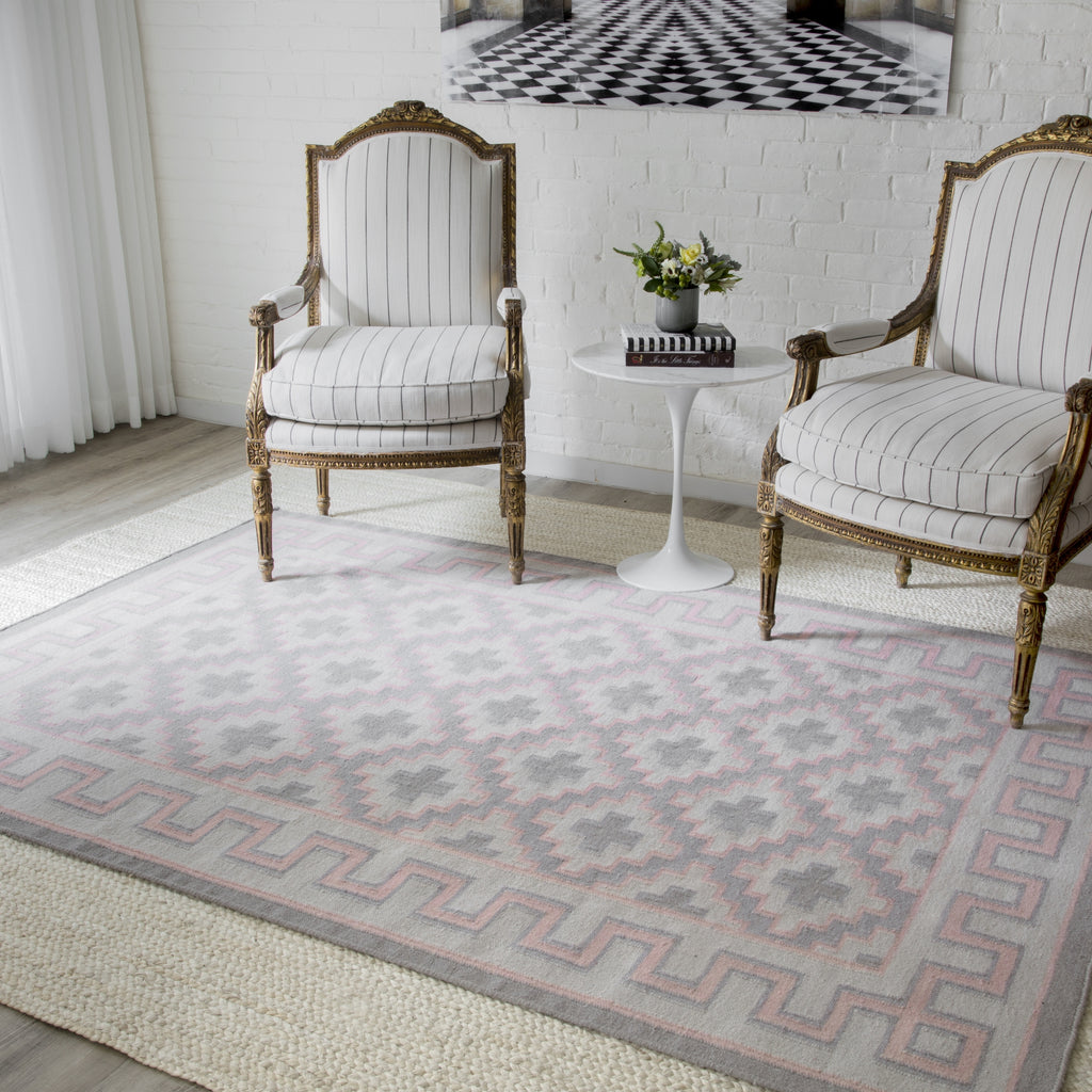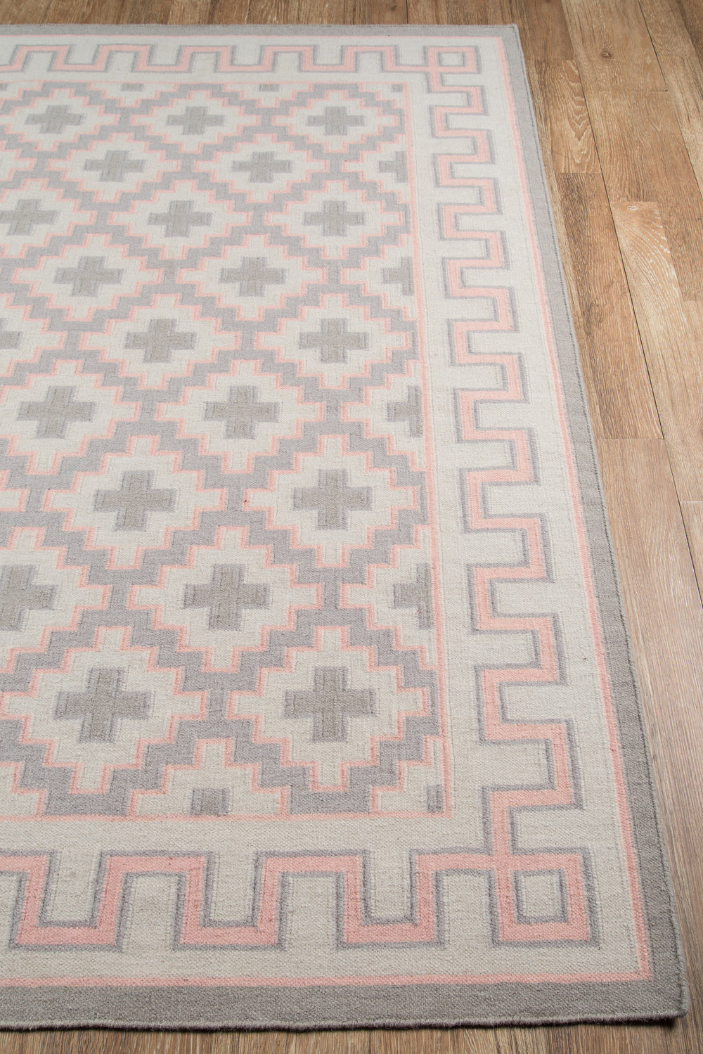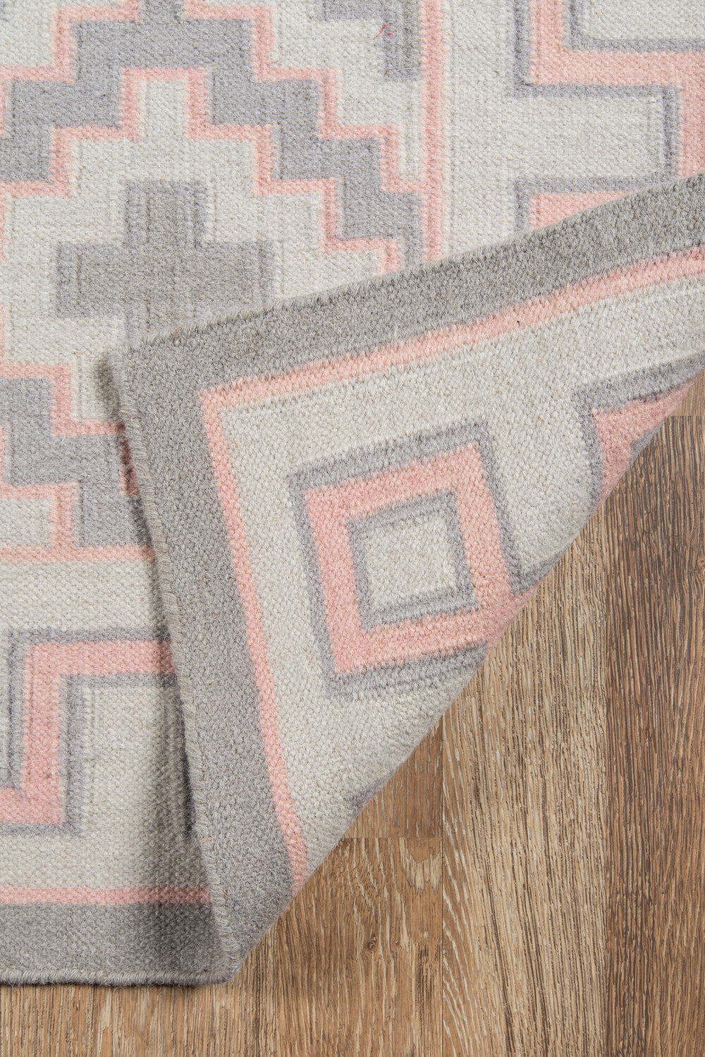 Timeless hand woven carpet techniques enhance the artisanal quality of this decorative area rug. Captured in colors ranging from pastel pink and ivory to denim blue and dove gray, fringed edges feel utterly bohemian beside bold geometric patterns and tribal motifs. Renown for its superior wear and stain resistance, 100% natural wool fibers make each decorative floorcovering a true statement piece with sustainable beauty.