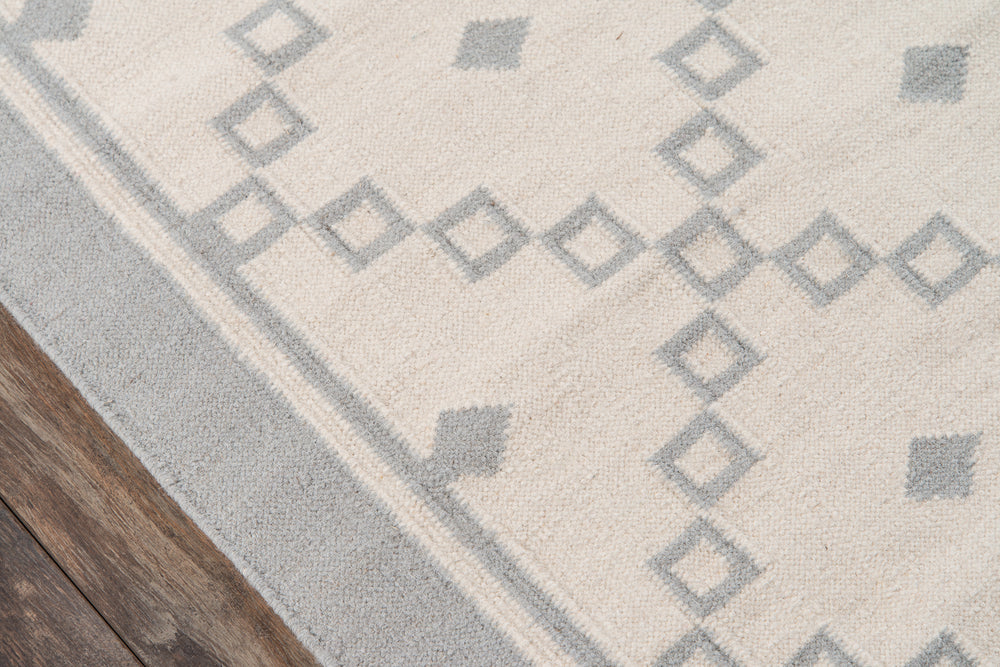 Timeless hand woven carpet techniques enhance the artisanal quality of this decorative area rug. Captured in colors ranging from pastel pink and ivory to denim blue and dove gray, fringed edges feel utterly bohemian beside bold geometric patterns and tribal motifs. Renown for its superior wear and stain resistance, 100% natural wool fibers make each decorative floorcovering a true statement piece with sustainable beauty.
