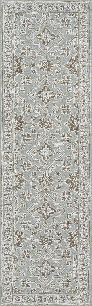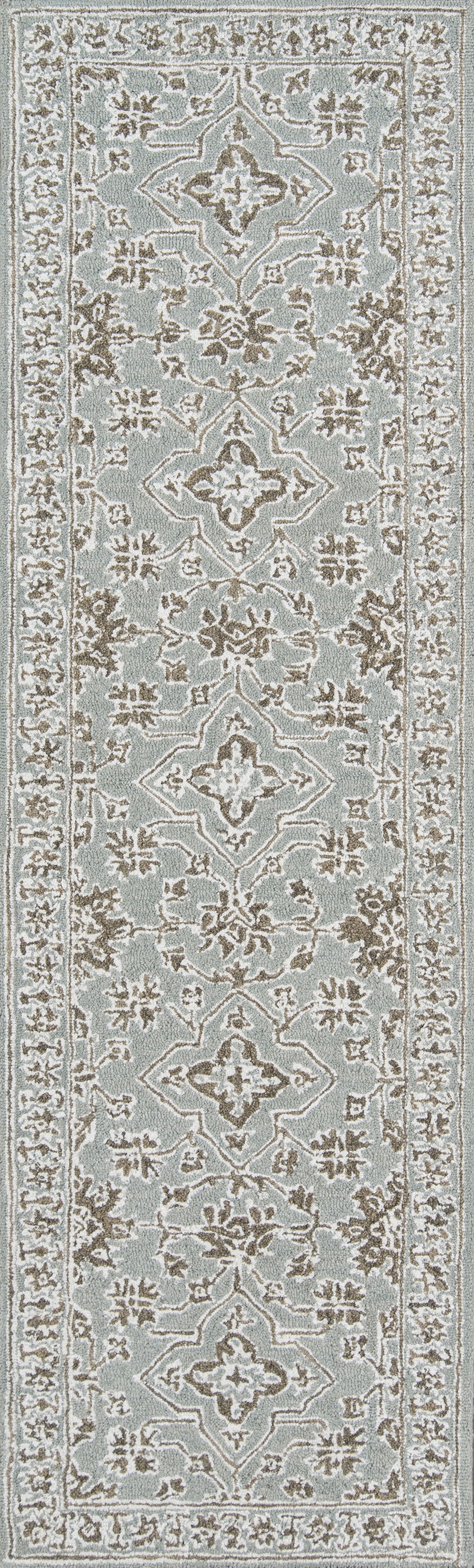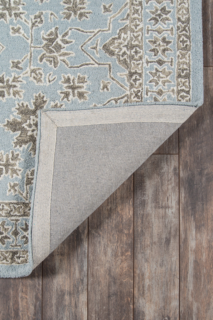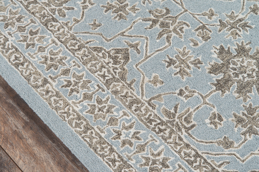 Vintage-style lace detailing in delicately faded neutrals lends this traditional area rug the aura of a European retreat. Ornamental medallions and floral-and-vine motifs provide the perfect focal point for every floor space, with a demure dove grey, sky blue and beige color palette that exudes subtle charm. Hand tufted from a dynamic blend of wool and viscose fibers, each area rug combines classical design with enduring durability that will adorn your floor with grace for years to come.