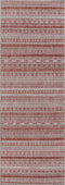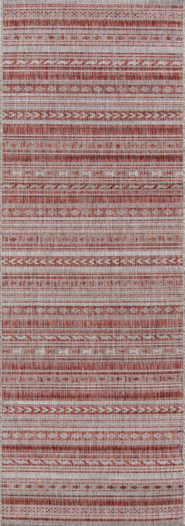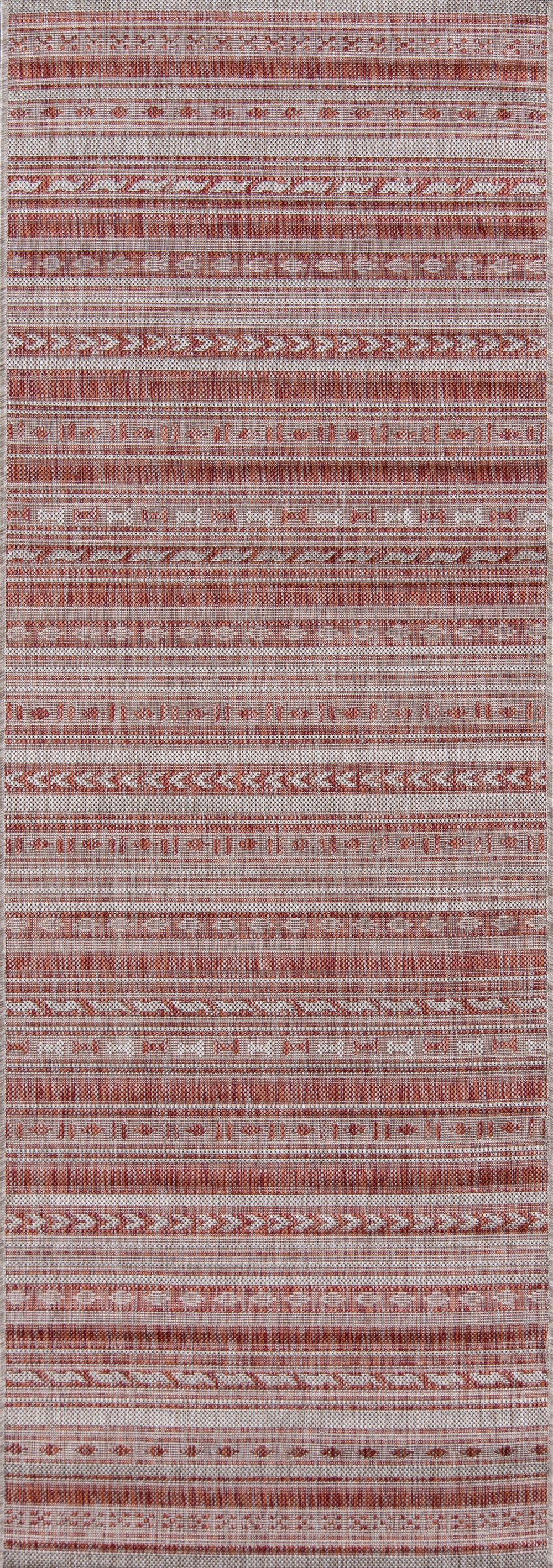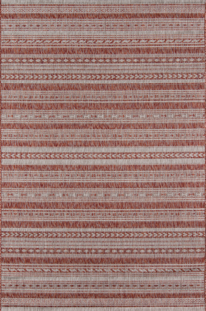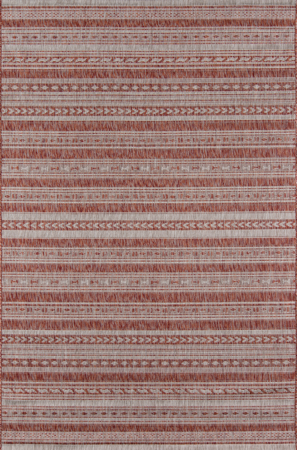 An indoor/outdoor rug assortment that exudes contemporary cool, this modern area rug collection features repetitive patterns inspired by international architectural motifs. The all-weather rug series emphasizes graphic geometric prints, using high contrast charcoal grey, chambray blue, fuchsia pink and russet red shades to draw attention toward the floor. Manufactured from durable polypropylene fibers, the decorative floorcovering series is a staple for statement-making interior and exterior spaces.