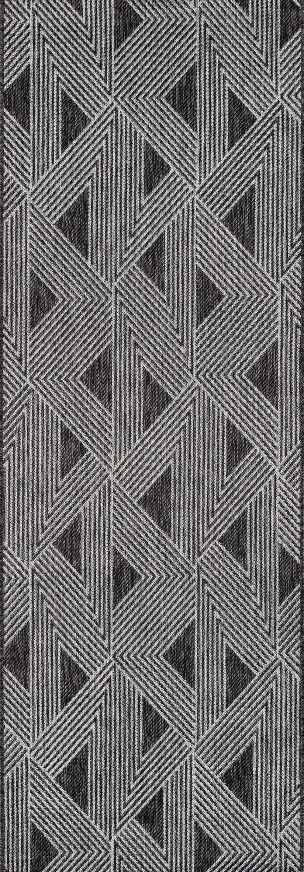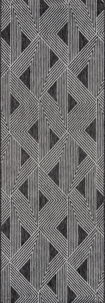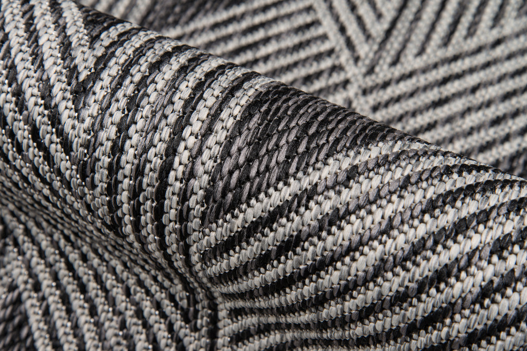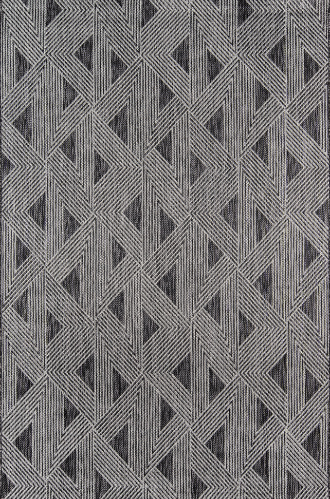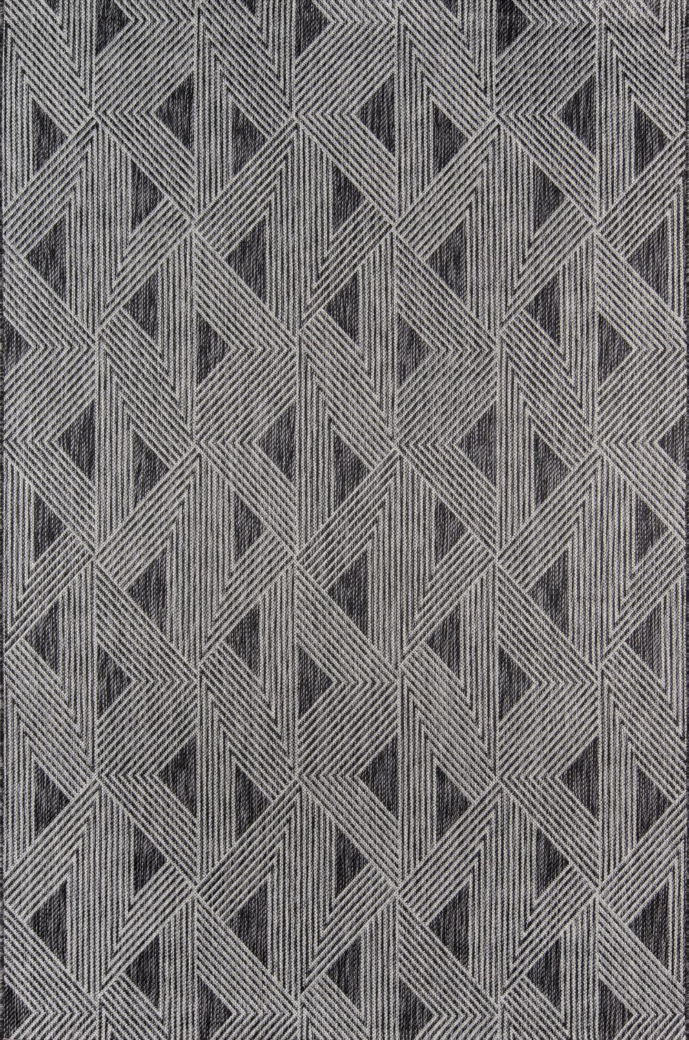 Graphic style meets global influences in this indoor/outdoor area rug with a textile print inspired by the Pacific Islands. The modern rug design is based on the interplay of tribal patterns with contemporary perspectives, as offset white triangles and repeating linear shapes combine to create the eye-catching geometric field of the black floorcovering. Resilient polypropylene fibers are stain, heat and UV-resistant, retaining their color and texture throughout consistent exposure to the elements.