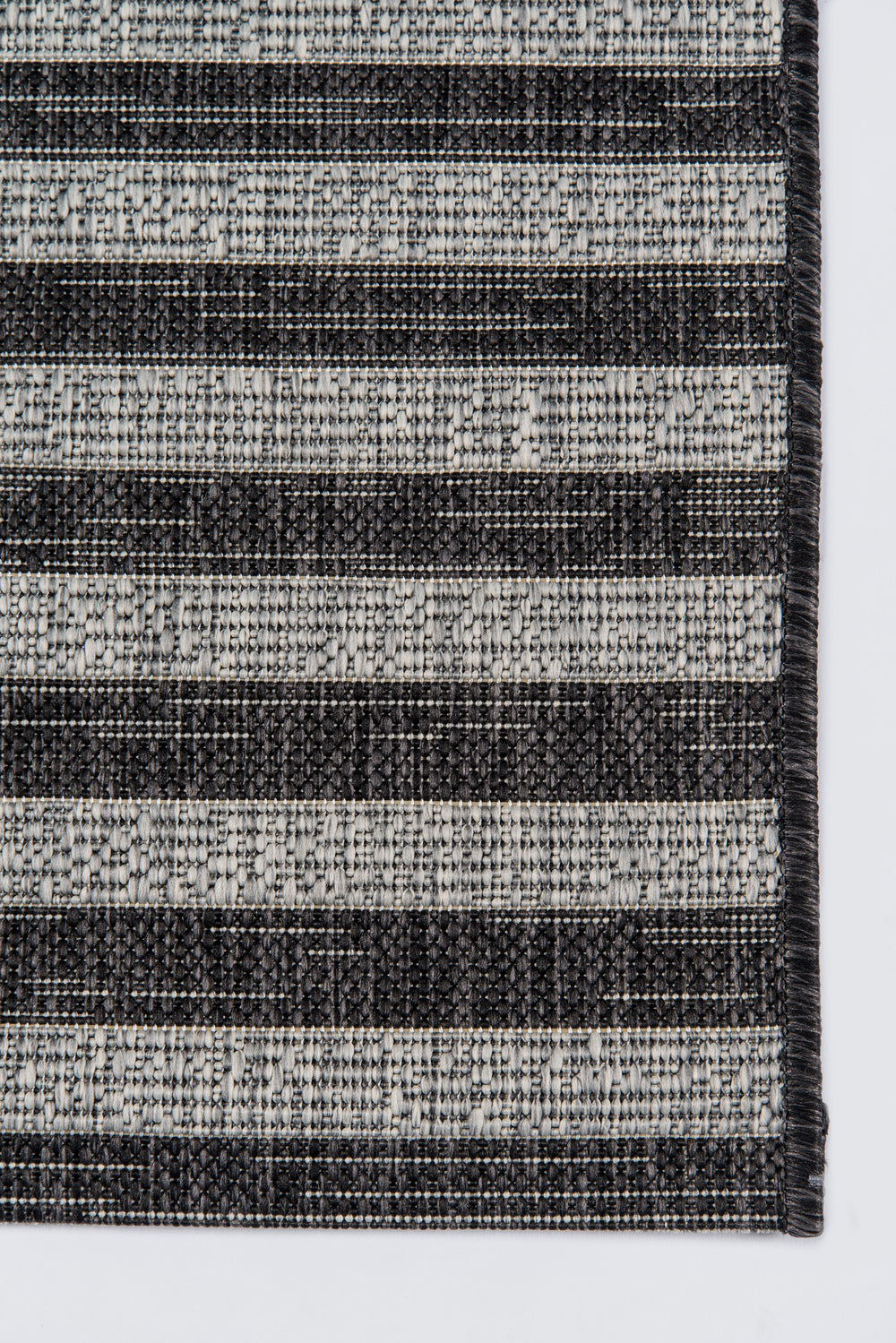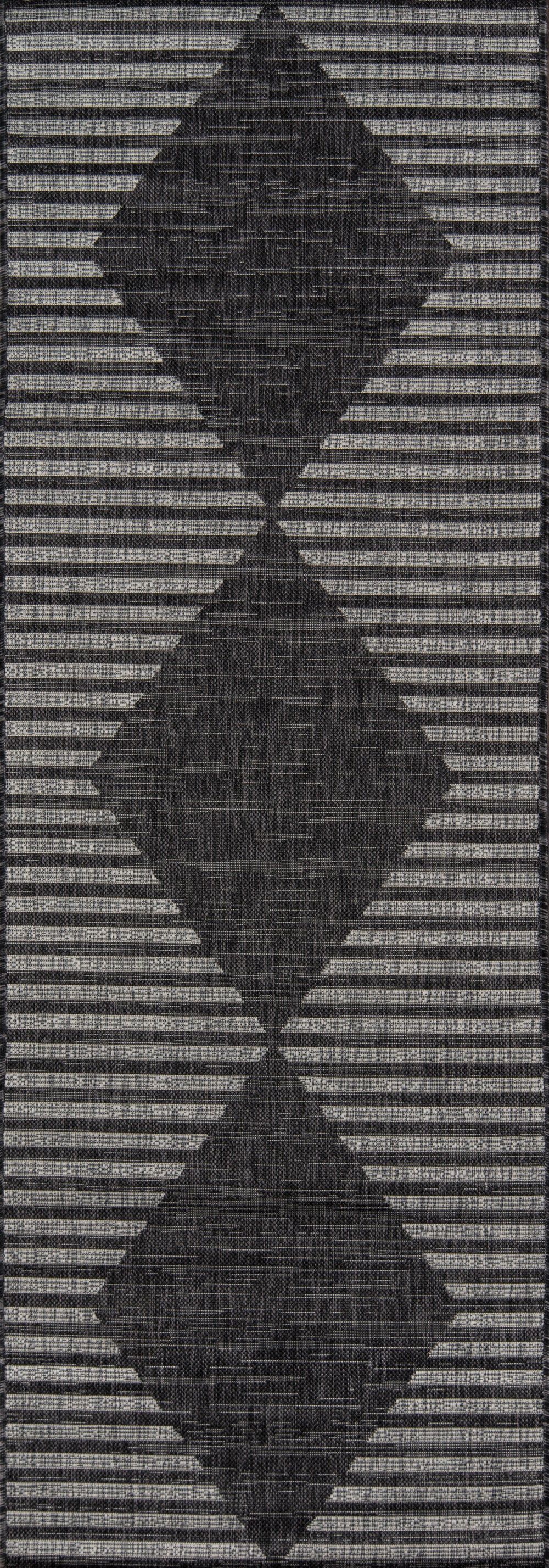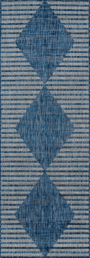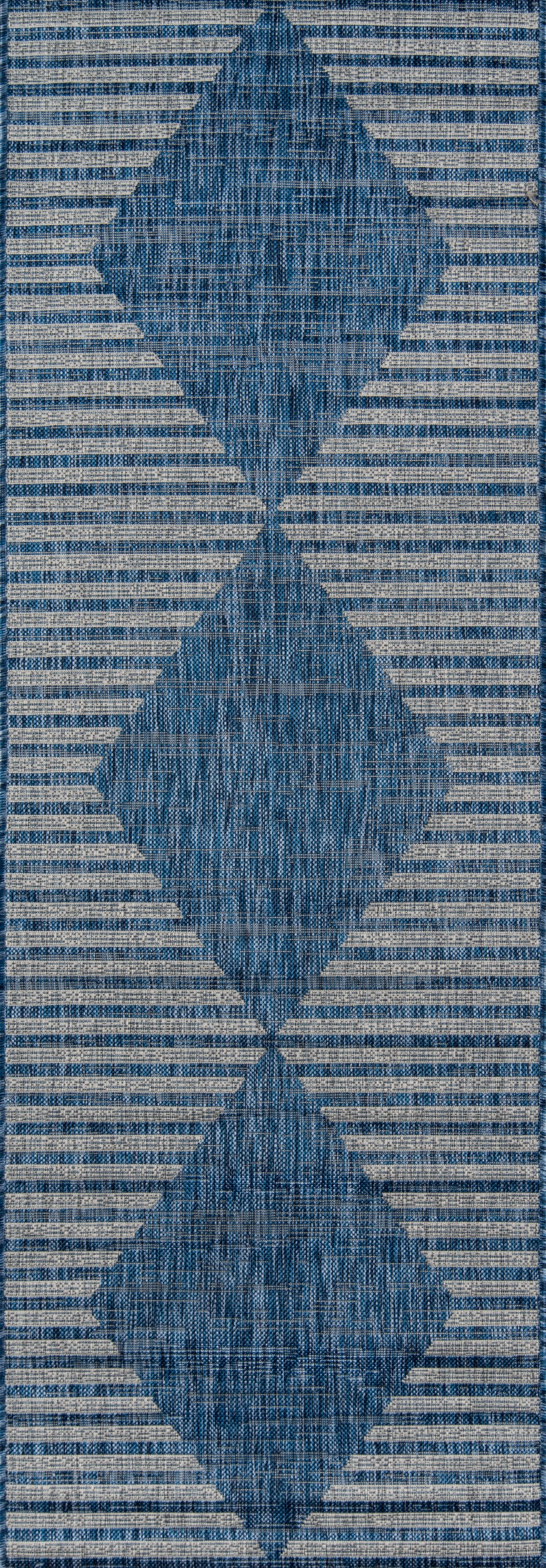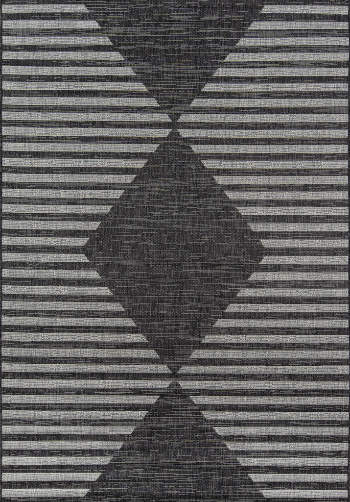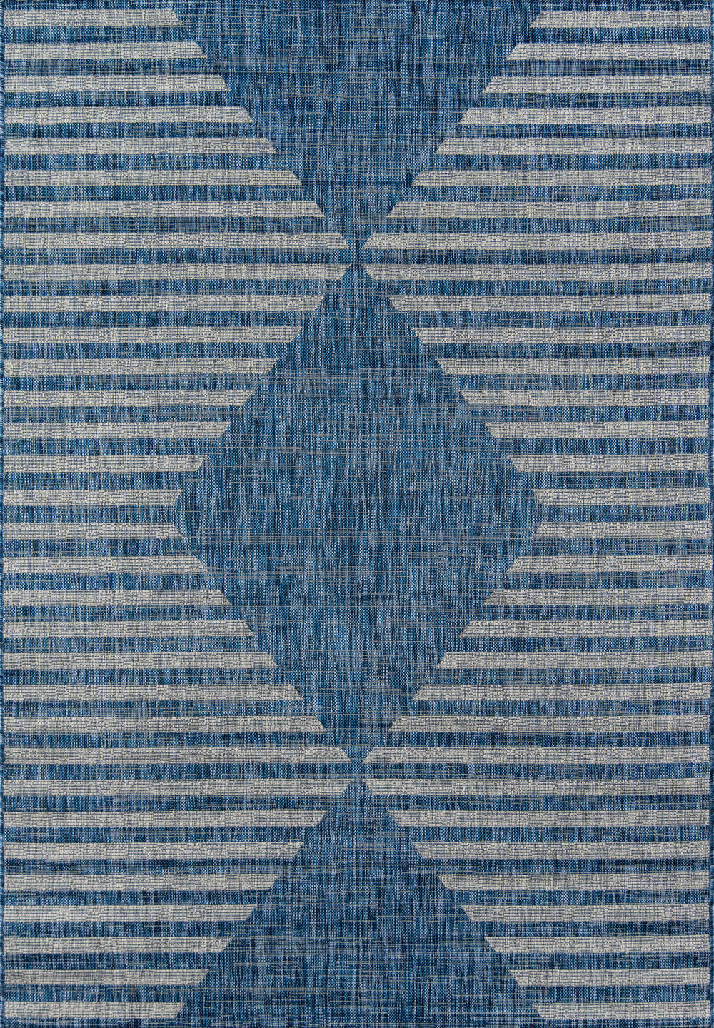 An indoor/outdoor rug assortment that exudes contemporary cool, this modern area rug collection features repetitive patterns inspired by international architectural motifs. The all-weather rug series emphasizes graphic geometric prints, using high contrast charcoal grey, chambray blue, fuchsia pink and russet red shades to draw attention toward the floor. Manufactured from durable polypropylene fibers, the decorative floorcovering series is a staple for statement-making interior and exterior spaces.