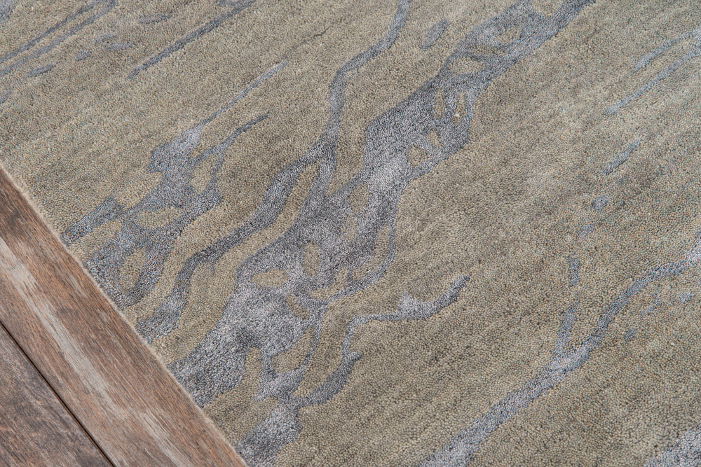 Boldly abstract expression puts this modern area rug collection at the cutting edge of contemporary design. The four elements serve as design inspiration for undulating ripples, stripes and striations that evolve across the rug field in artistic reflections of earth, air, sea and sky. Natural wool fibers provide a soft foundation for the decorative floorcovering assortment as viscose accents define the organic gestures of each carpet pattern with subtle luster.
