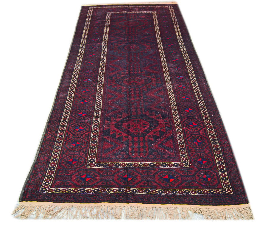 This Afghani Turkman rug features alluring dark colors and intricate detail to enjoy. The wool rug is dyed with wine red shades and dark blue colors. It features three central medallions, and it has two cream-colored borders for tribal beauty. This runner rug is an excellent choice for an entryway or kitchen rug. This rug is hand-crafted by talented Afghani artists. The designs and patterns are artistic expressions of the weavers, so this rug is a true piece of art. It's made with quality wool to ensure it stays quality in high-traffic areas of your home. Make this traditional rug an heirloom piece your family will enjoy for generations.