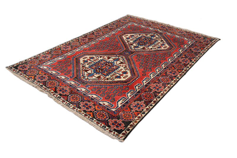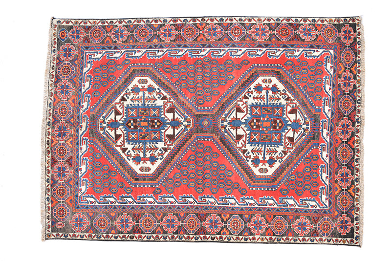 Vintage Oriental Persian Rug, Afshar Elegance Persian Tribal Rug, Wine Red Brown Rug, 5' x 6'5"