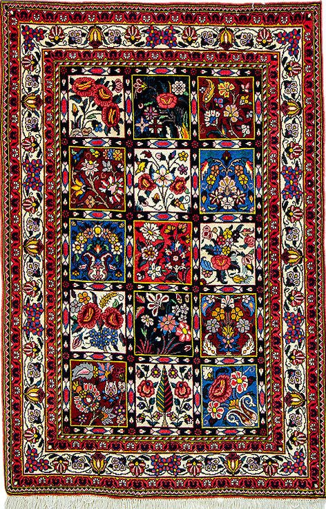 Explore the subtleties of Bakhtiari florals in this authentic Persian rug. True to the Bakhtiari style, it features large squares with unique floral designs inside each one. Traditional vases and trees make an appearance as well. Three rows of ornate borders finish out this elegant look. A combination of reds, browns, yellow, and blues make this rug a beautiful work of art to admire. Talented Bakhtiari artisans hand-knotted each tuft of this authentic Persian rug. They continue the tradition of the region with their techniques and patterns. It's made from wool and cotton for a balance of durability and softness for you to enjoy.