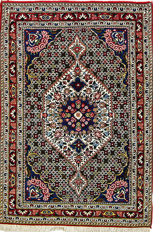 This Bakhtiari tribal rug showcases the best of traditional craftsmanship. It features a large central medallion with ornate motifs spreading away from the center. This design makes a big statement, so it's a perfect addition to your living room decor. This primarily cream and red colored rug feature accents in shades of blue, green, and yellow for dynamic visual interest. The artisans hand-knotted this rug to give it traditional durability and beauty. It's made with a wool and cotton blend. The wool allows this rug to remain vibrant even in high-traffic areas, and the cotton adds softness and affordability. This wool rug is sure to be enjoyed in your home for years to come.