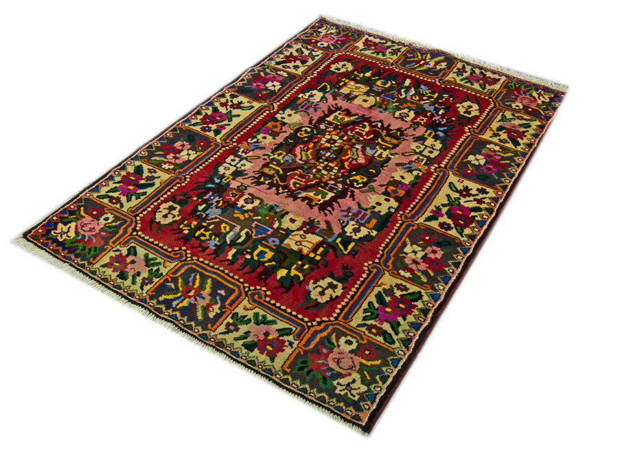 Old meets new with this unique Bakhtiari Persian tribal rug. The artisan combined centuries-old Persian motifs and patterns with a unique play on borders and structure. Vibrant shades of pink, red, blue, and yellow capture the eye and the spirit. This authentic piece looks beautiful in a living or bedroom, and its original styling ensures it will be an excellent addition to your collection. Bakhtiari artisans hand-knotted this Persian rug with traditional patterns, techniques, and materials. It's made with pure wool, so it's reliably thick and long-lasting. Place it in high-traffic areas of your home, and it will stay beautiful for years.