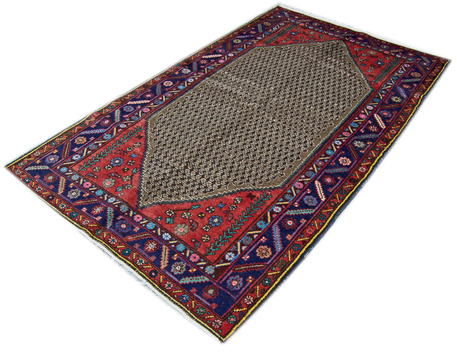 Vintage Hamadan Persian Rug Tribal Pure Wool Rug, Red Brown Blue, 4' x 7'