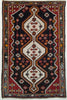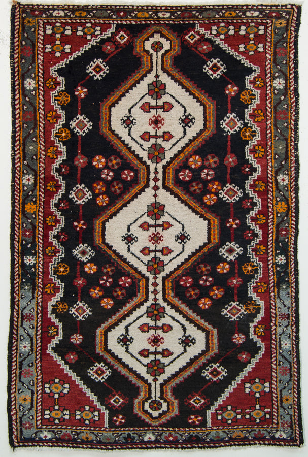 Vintage Hamadan Persian Rug Pure Wool Tribal Rug, Black Red Gray, 3' x 5'