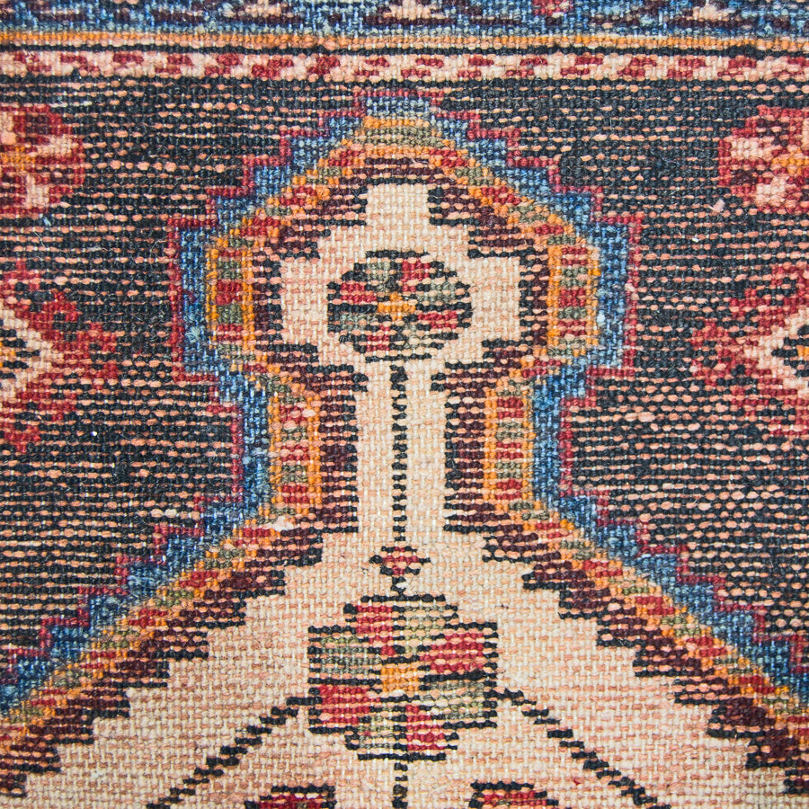Invite the traditional patterns and techniques of the Hamadan culture into your home with this handmade Persian rug. It features stunning flowers, pinwheels, and geometric shapes. This traditional area rug has a modern twist with the lovely black gradient around the border. Choose the 3 x 5 size as a perfect addition to your office, bedroom, or any smaller room. This natural fiber rug is made from pure wool, so you can rely on the lasting durability. It’s made to stay vibrant and resist fraying for years of use, so it’s sure to become a family heirloom in your home.