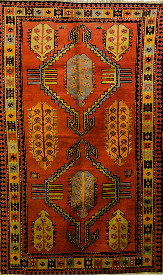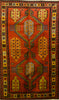 Vintage Tribal Kazak Rug, Tribal Motif Wool Rug, Yellow Orange, 4' x 7'5"