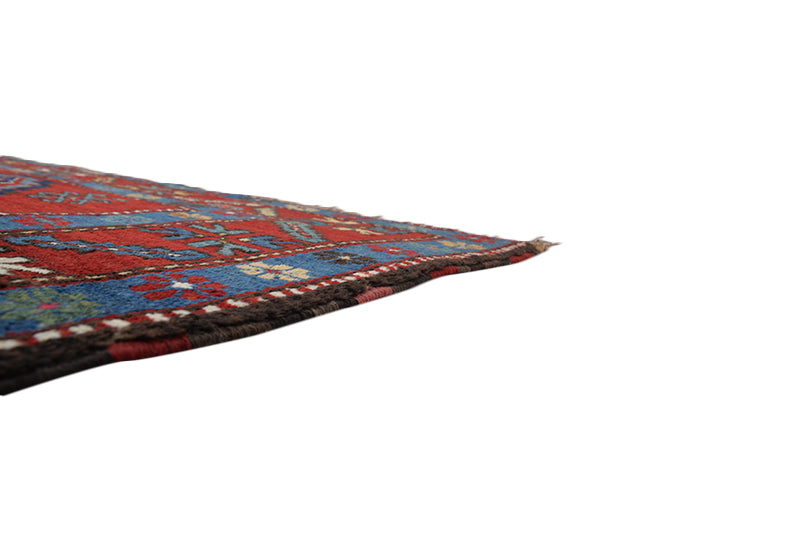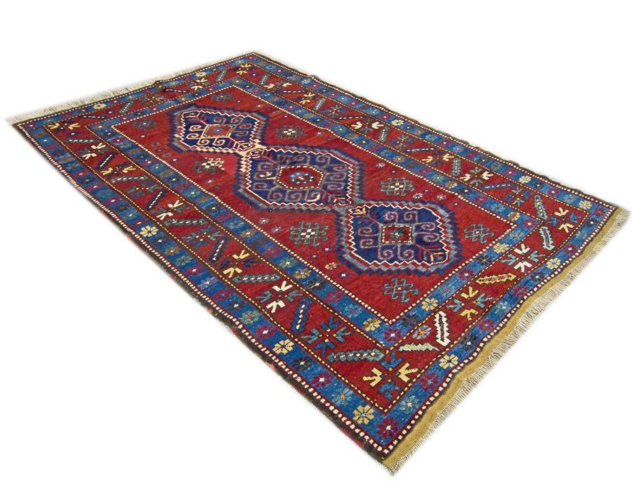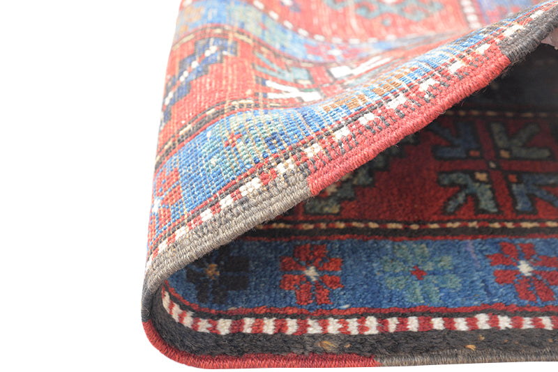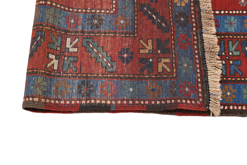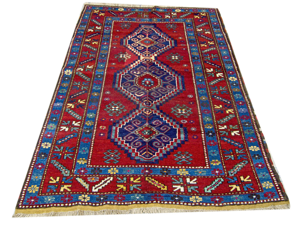 Vintage Kazak Turkish Rug, Red Blue Rug, 4' x 6'5"