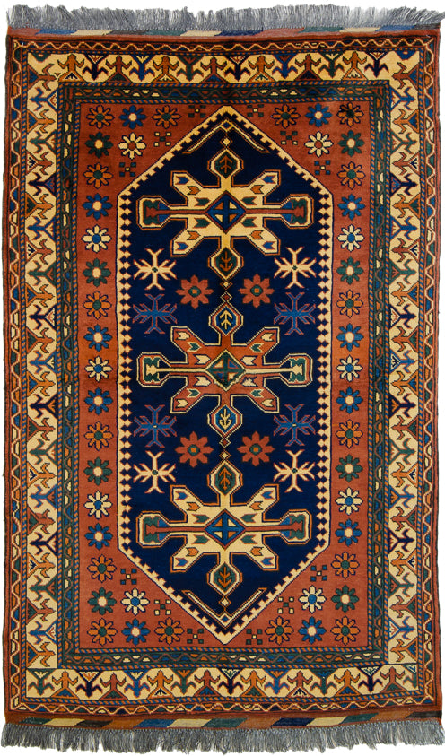 Vintage Persian Rug Tribal Rug, Blue Red Rug, 3' x 5'