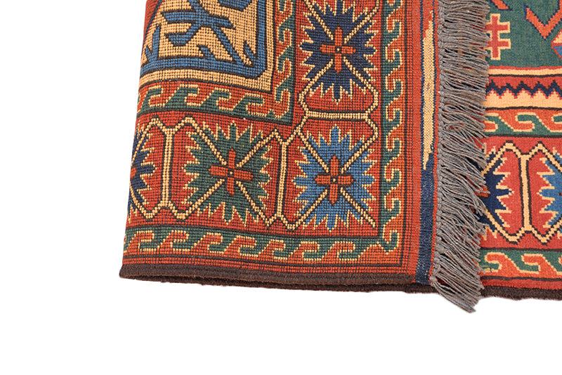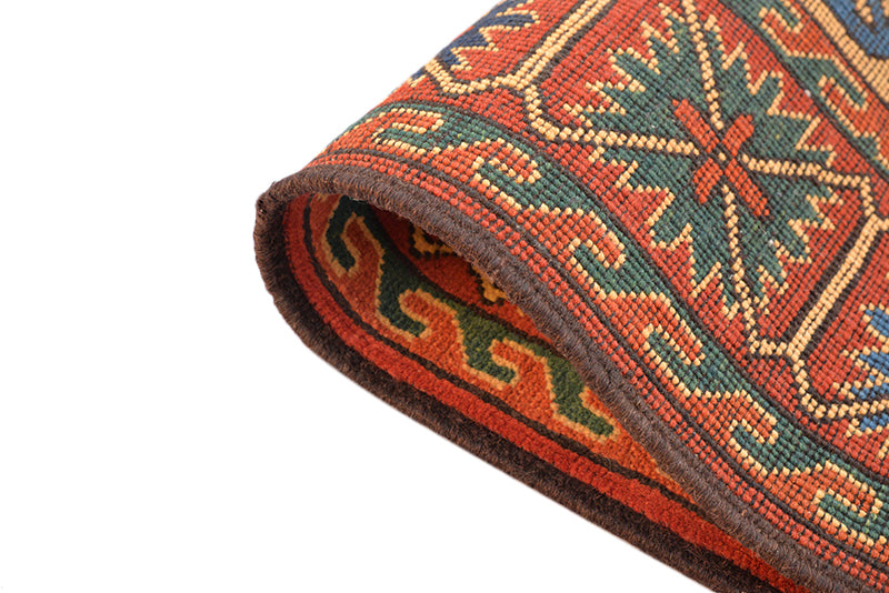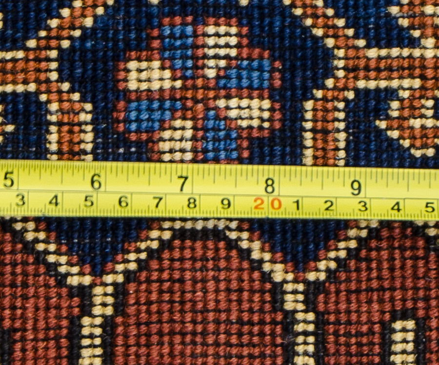 Display traditional Turkman patterns and colors in your home with this authentic Persian rug. The design features small shapes and motifs that combined to become complex artistic expressions. You'll find florals, arrows, structures and more each time you look at this rug. A classic blend of reds, browns, and blues make up the color palette, so it's easily blended with your living room decor. Kehghai village artisans hand-knotted this authentic Turkman rug using centuries-old techniques and patterns. The wool makes this rug heavy and thick, so it easily withstands heavy foot traffic. It is a beautiful handmade rug to add to your collection.