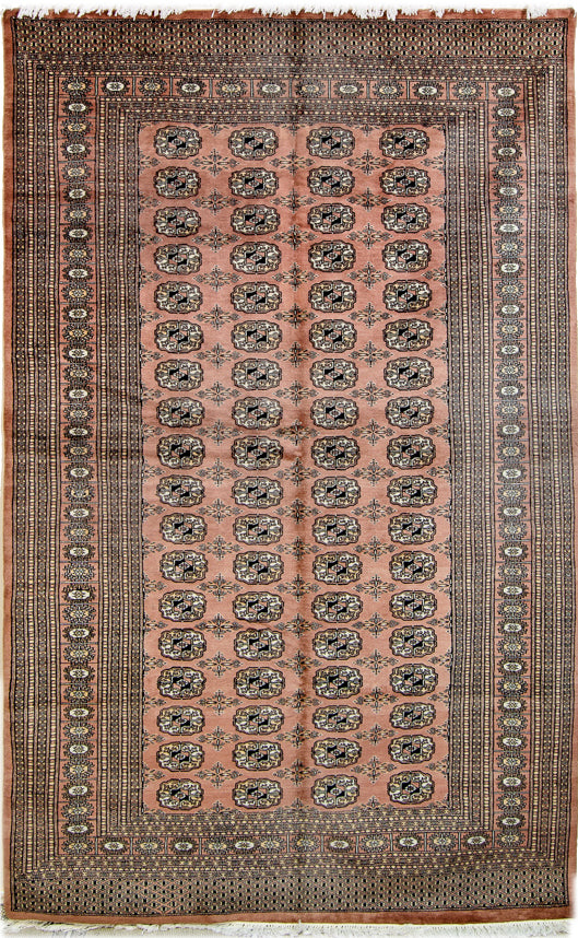 Vintage Oriental Pakistani Wool and Cotton Oriental Rug, Pink and Brown Rug, 5' x 8' Rug