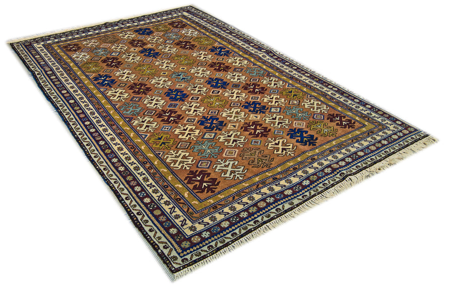 Oriental Shirvan Tribal Pure Wool Rug, Orange and Beige Rug, 5' x 8' Rug